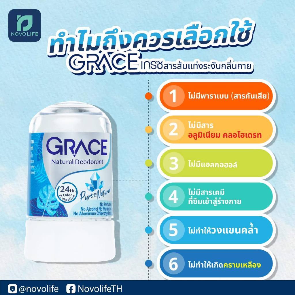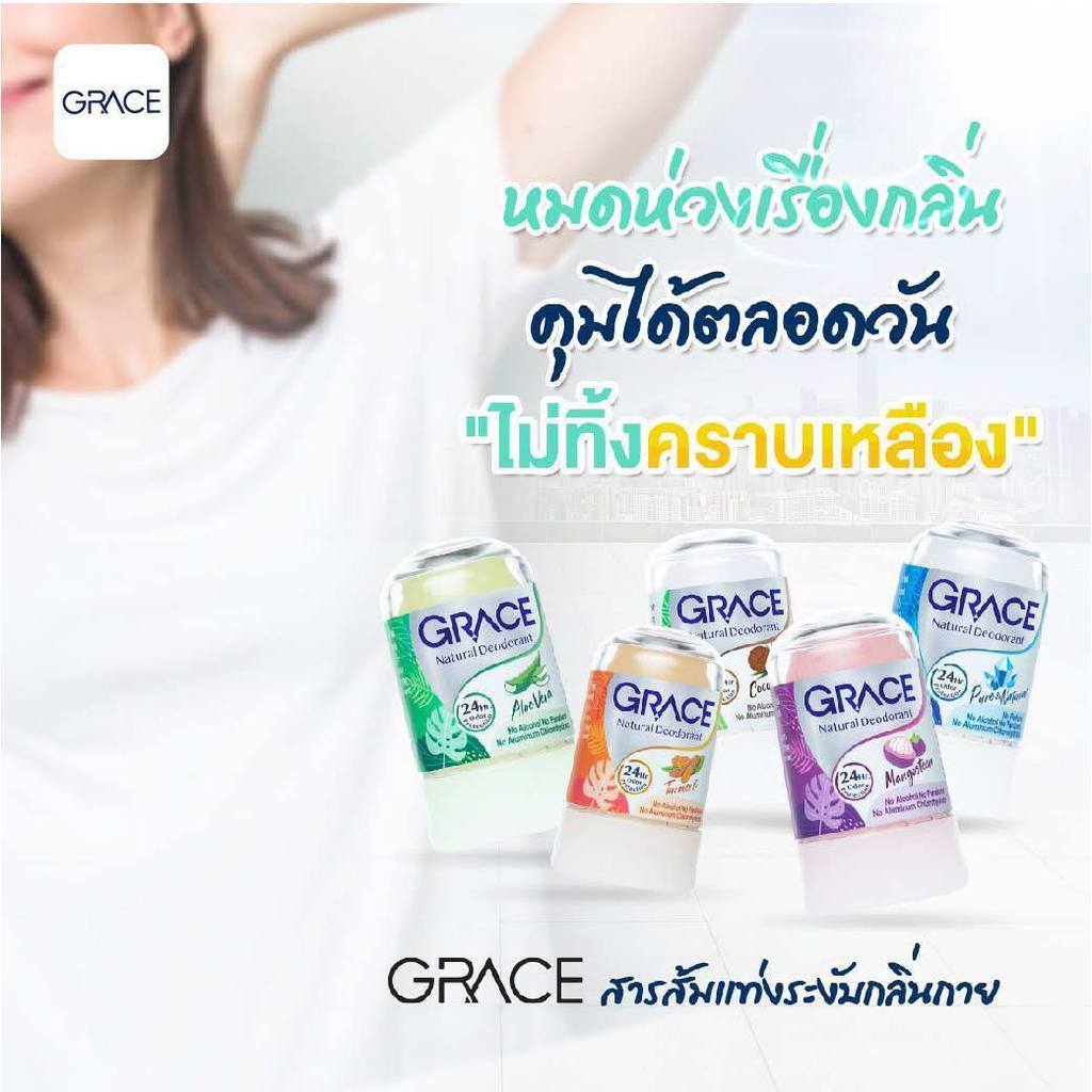 (1อัน) Grace เกรซ สารส้มแท่งระงับกลิ่นกาย ยับยั้งกลิ่นและเหงื่อ (ขนาด 70 กรัม)