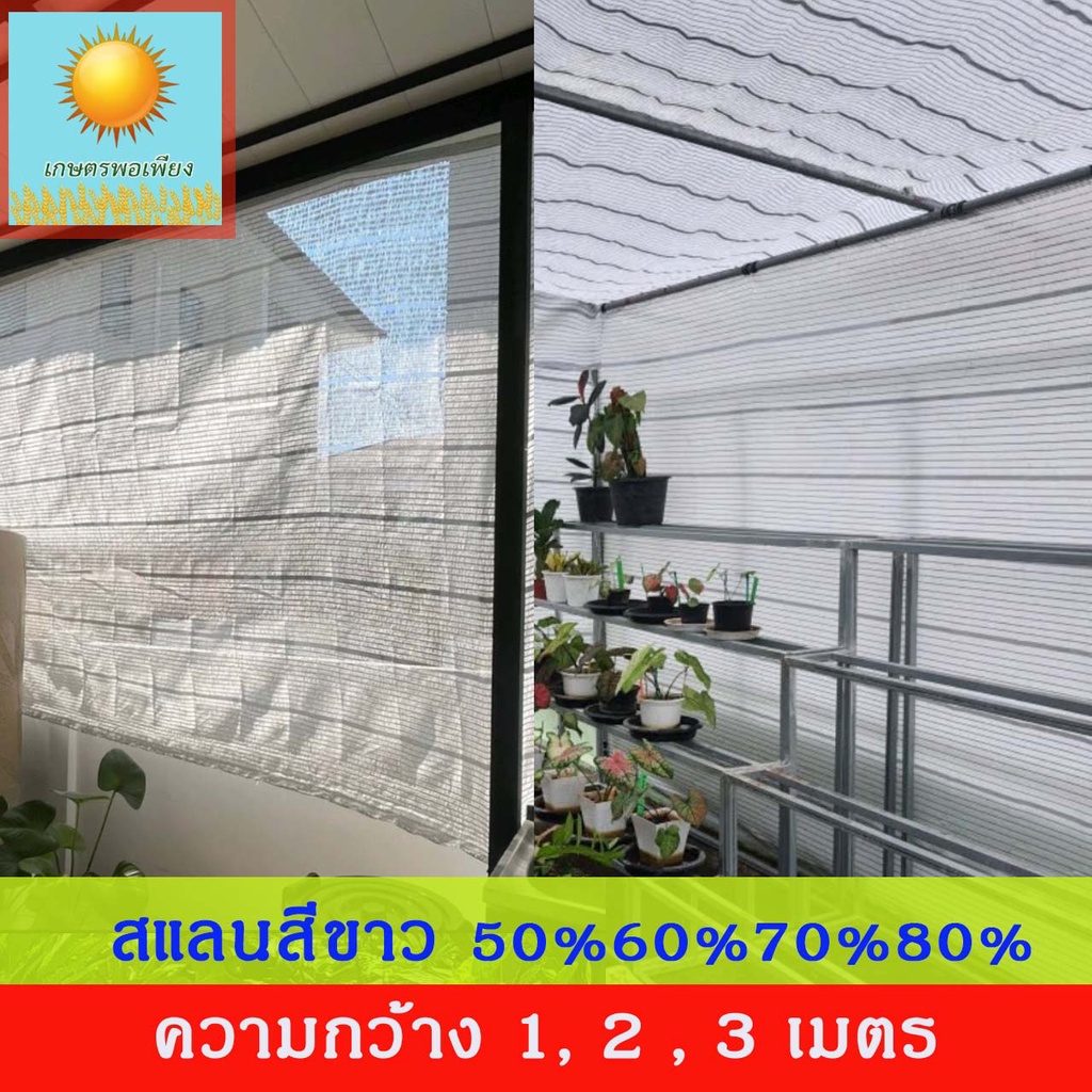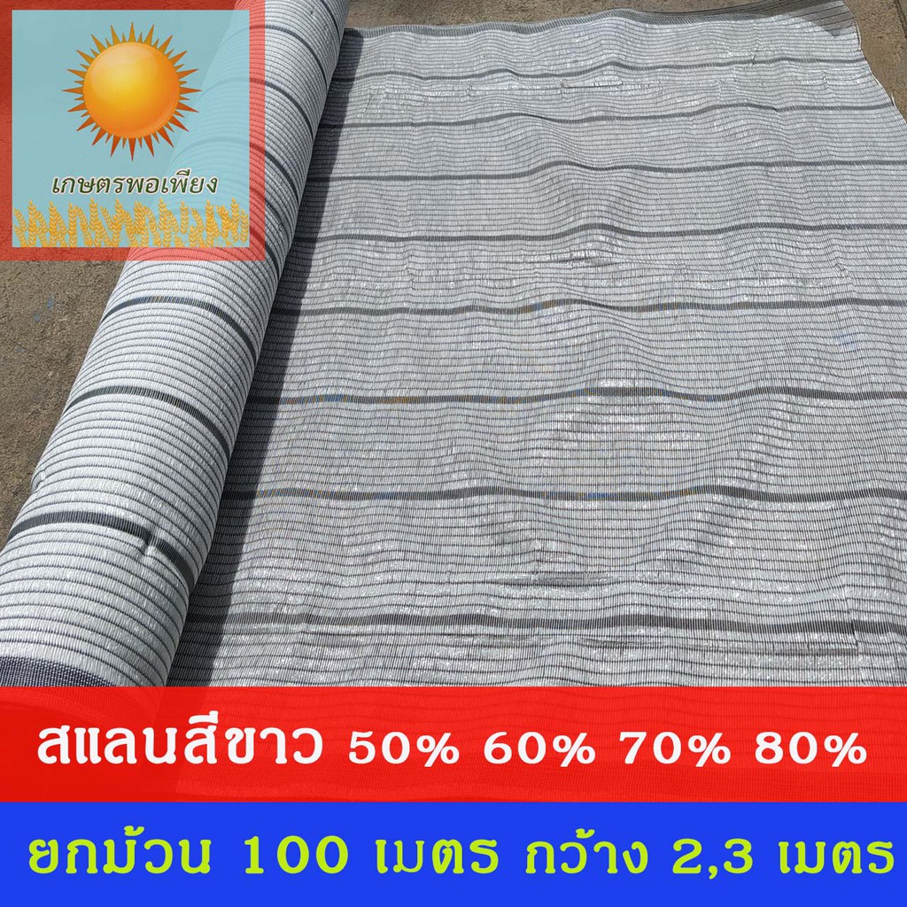 สแลนสีขาว 50%, 60%, 70%, 80% กว้าง 2 เมตร , 3 เมตร ยกม้วน ยาว100 เมตร เคลือบสารป้องการแสง UV