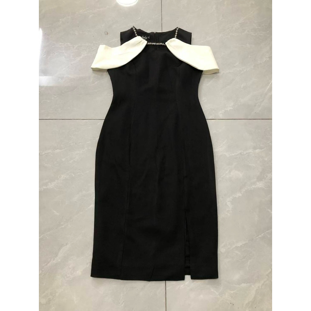 เดรสยาว สีดำ เว้าไหล่ คอปักเพชร งานป้าย love lady