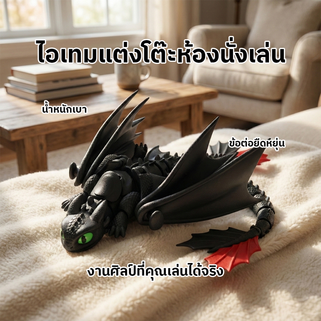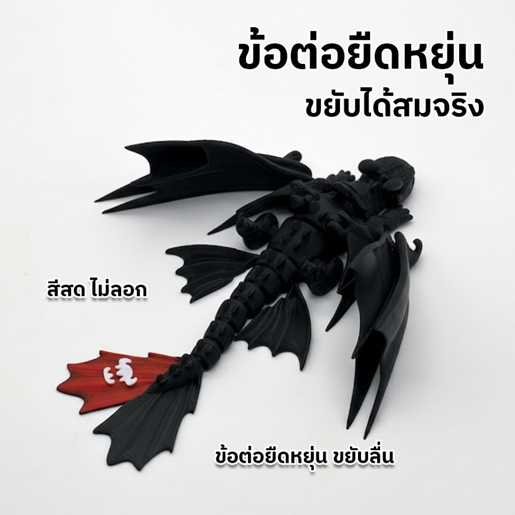 มังกร Black White 3D Print ข้อต่อ ขยับได้ ของสะสม แฟนตาซี แต่งโต๊ะ