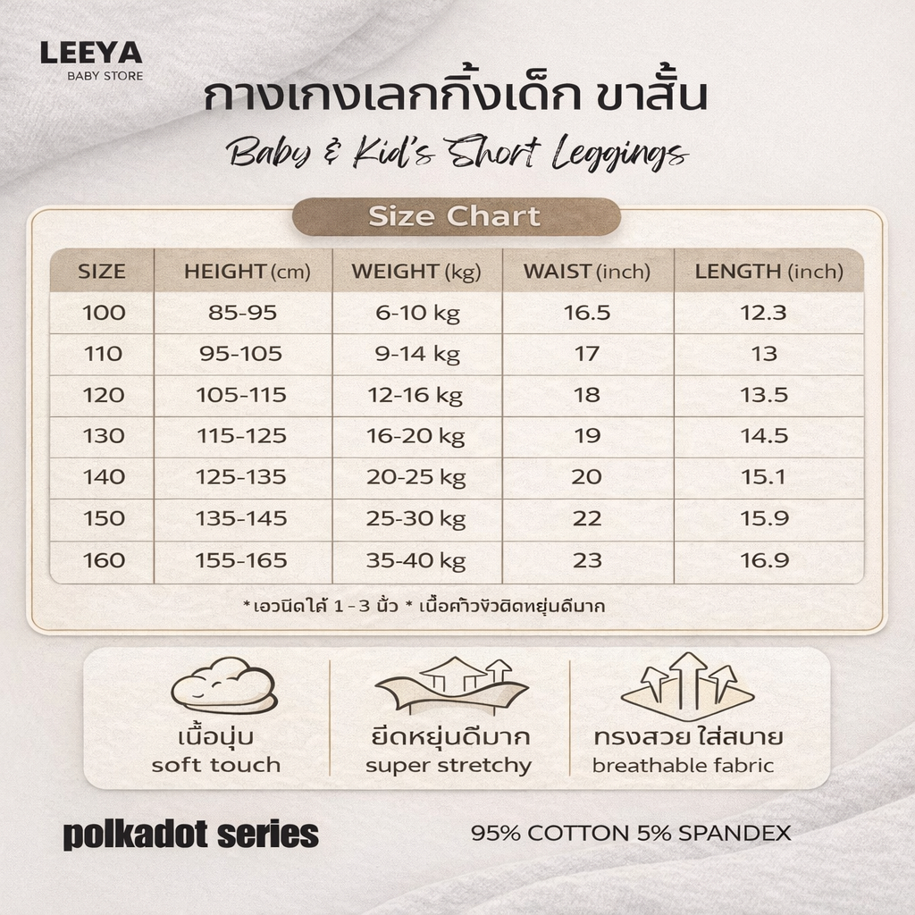 Leeya เลคกิ้งเด็ก ขาสั้น ลายจุด supersoft ที่ใส่สบายที่สุด ยืดยุนดีมาก ทรงสวย Baby & Kids Short Leggings
