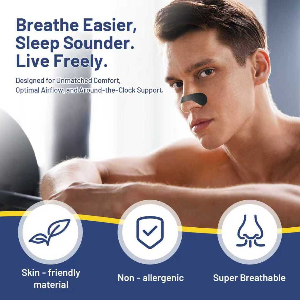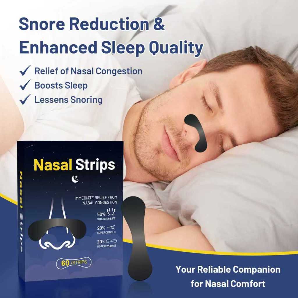 แผ่นแปะจมูกลดกรน สูตรแรงพิเศษ ติดแน่น กันเหงื่อ ช่วยหายใจดีขึ้น เหมาะสำหรับนอนและออกกำลังกาย 60 ชิ้น