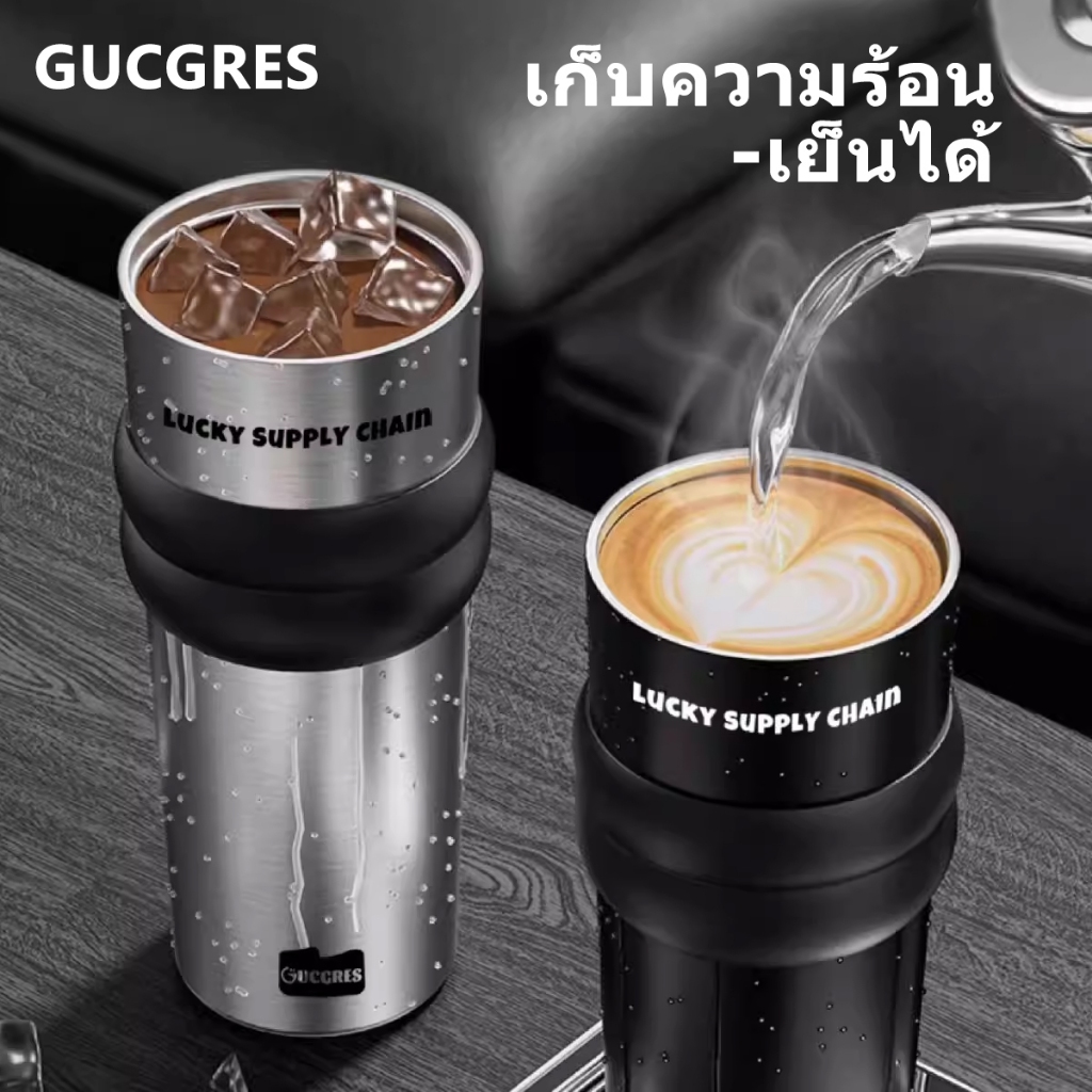 GUCGRES (700ml/24oz) ของแท้ 100% แก้วเก็บความเย็นสแตนเลส เก็บความร้อน-เย็นได้ แก้วน้ำความจุใหญ่ เคลือบเซรามิค แก้วกาแฟ