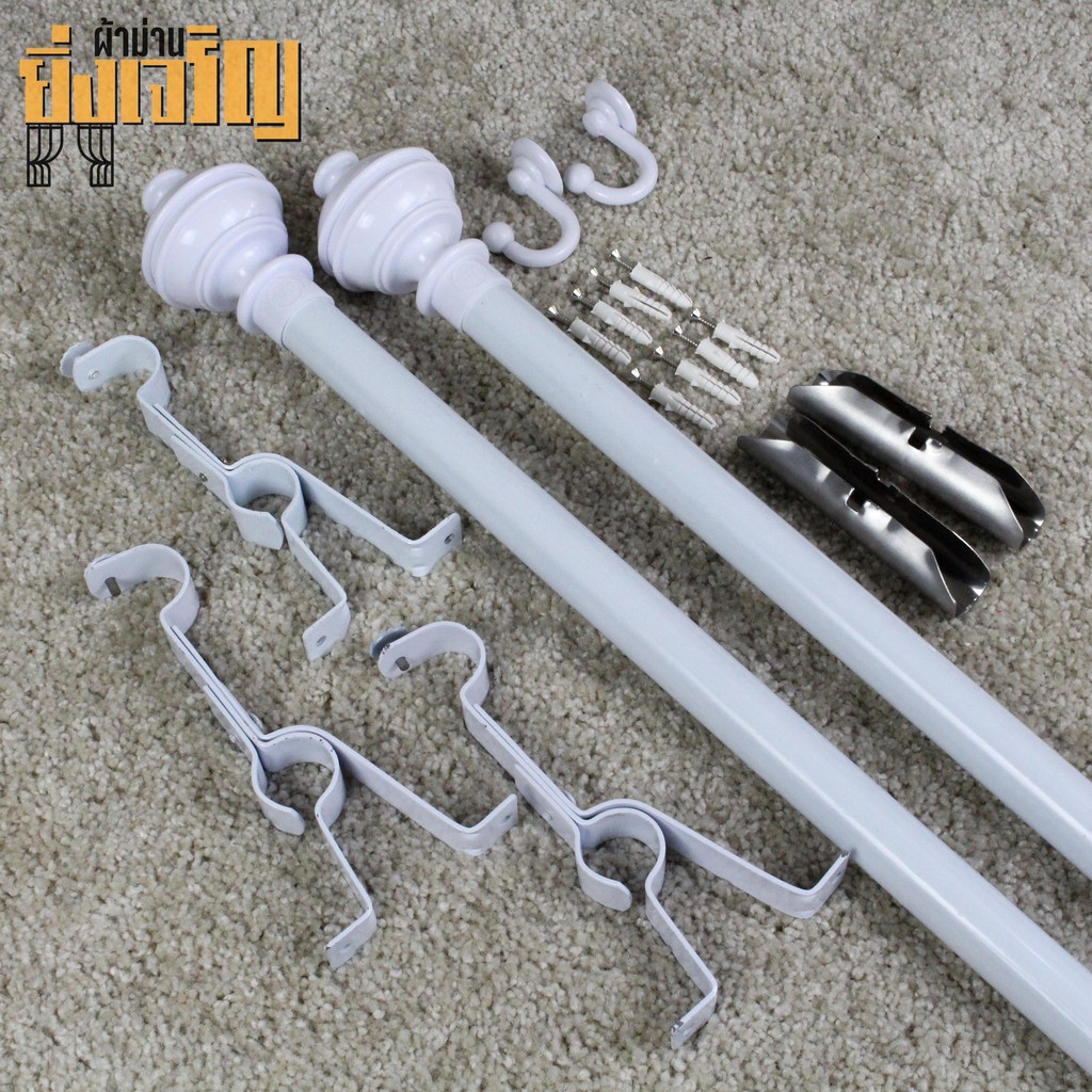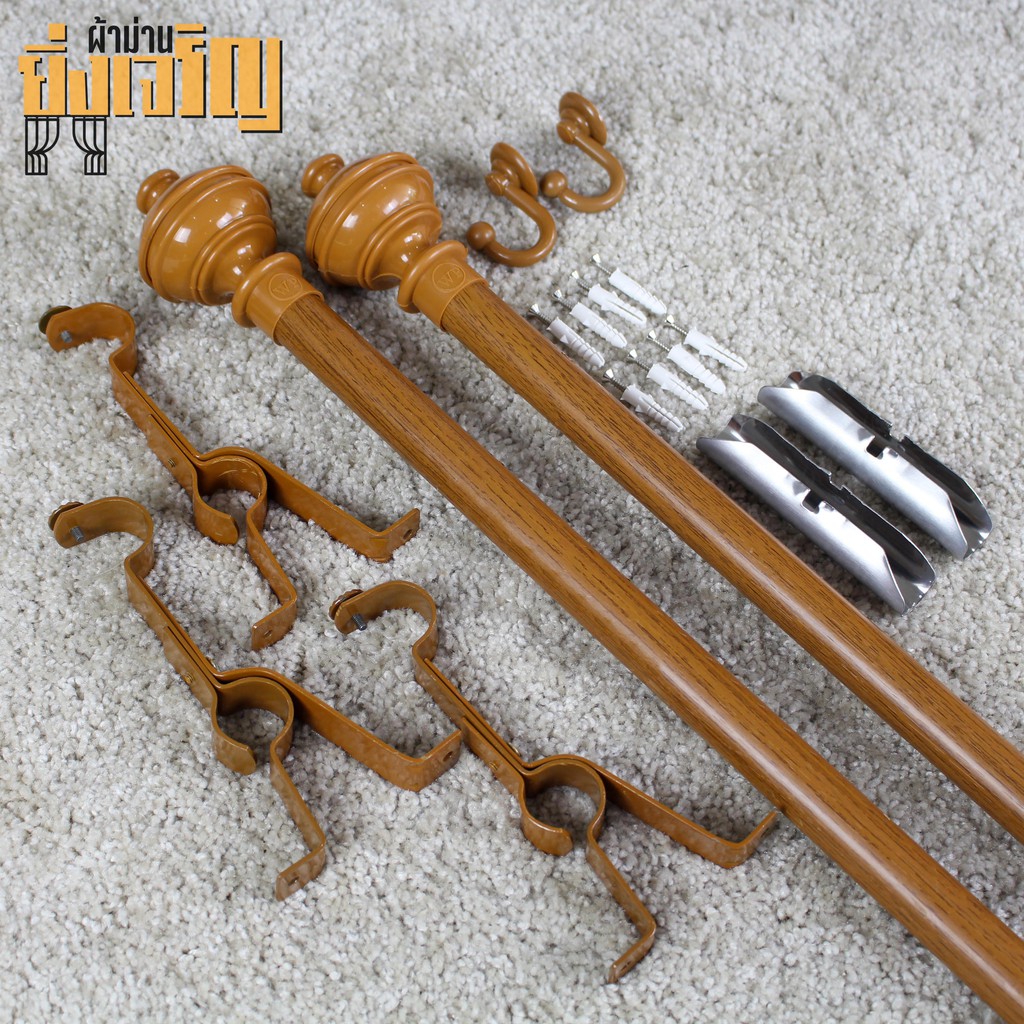ชุดราวผ้าม่านตาไก่ 2ชั้น(2ราว) (หัวกลมจุก สีดำ) ผ้าม่านร้อยท่อ กันยูวี สีดำ สักทอง โอ๊คแดง