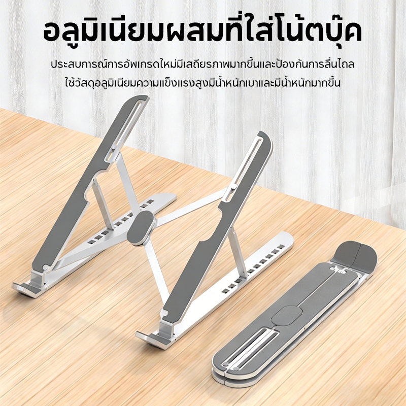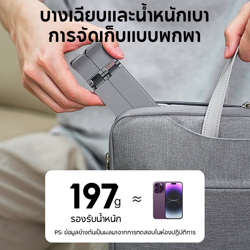 OWIRE ที่วางโน๊ตบุ๊ค โลหะผสมอลูมิเนียมบริสุทธิ์ แผ่นรองกันลื่นยาวเป็นพิเศษ ขาตั้งโน๊ตบุ๊คพับเก็บได้ ฟรีถุงผ้า พกพาสะดวก