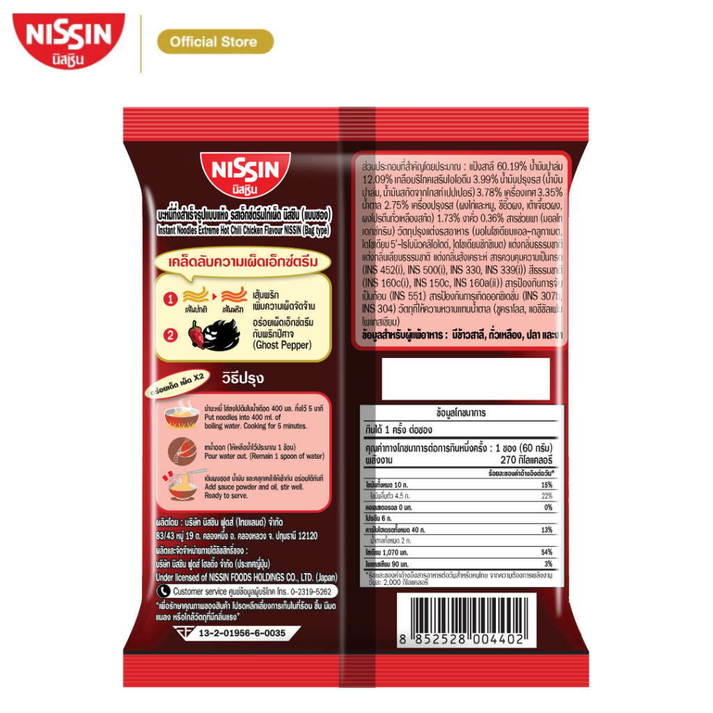 นิสชิน บะหมี่สำเร็จรูป รสเอ็กซ์ตรีมไก่เผ็ด เส้นพริก (แบบซอง) แพ็ค 5 (2แพ็ค) - NISSIN Extreme Hot Chili Pack 5