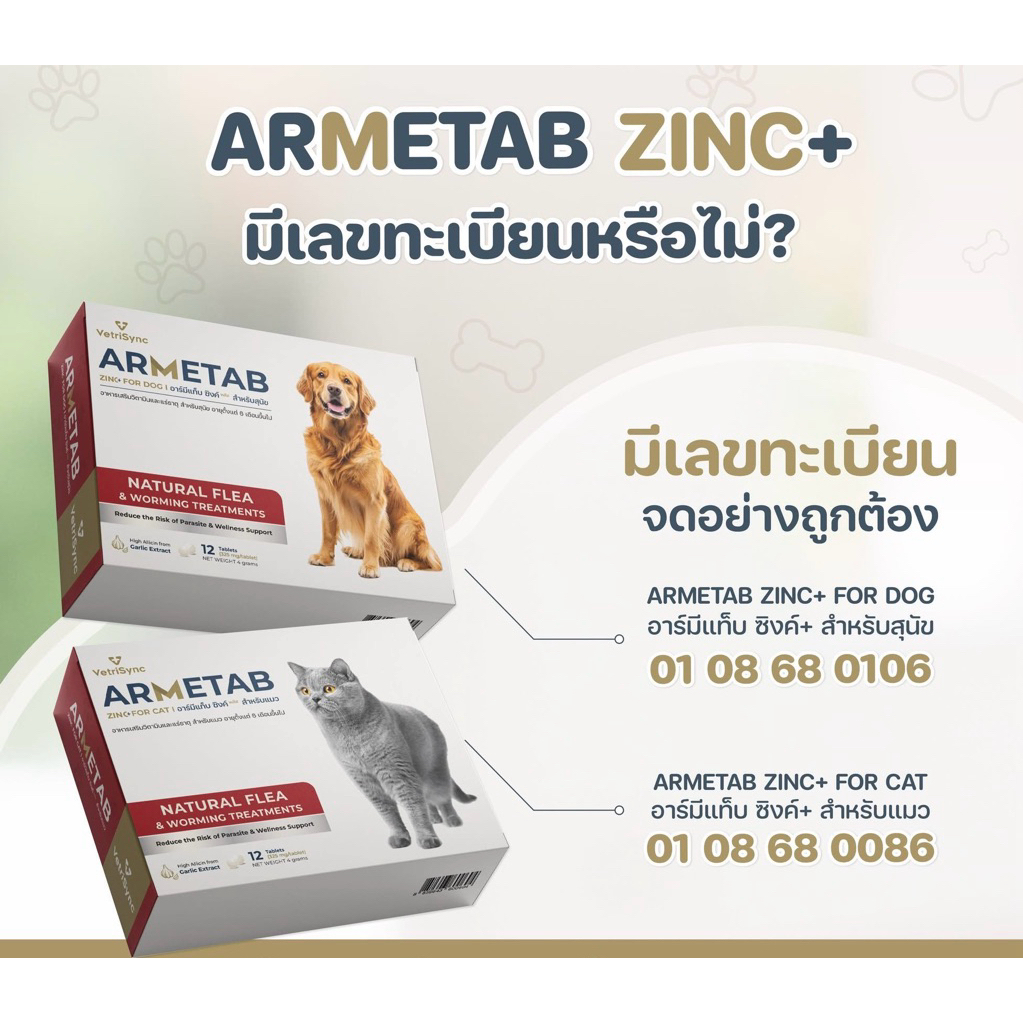 *ยกโหล ราคาส่ง* ARMETAB ZINC+ ป้องกันเห็บ-หมัด-พยาธิ-เหา-ไร-เรื้อน สุนัขและแมว รูปแบบอาหารเสริม(กล่อง12เม็ด)