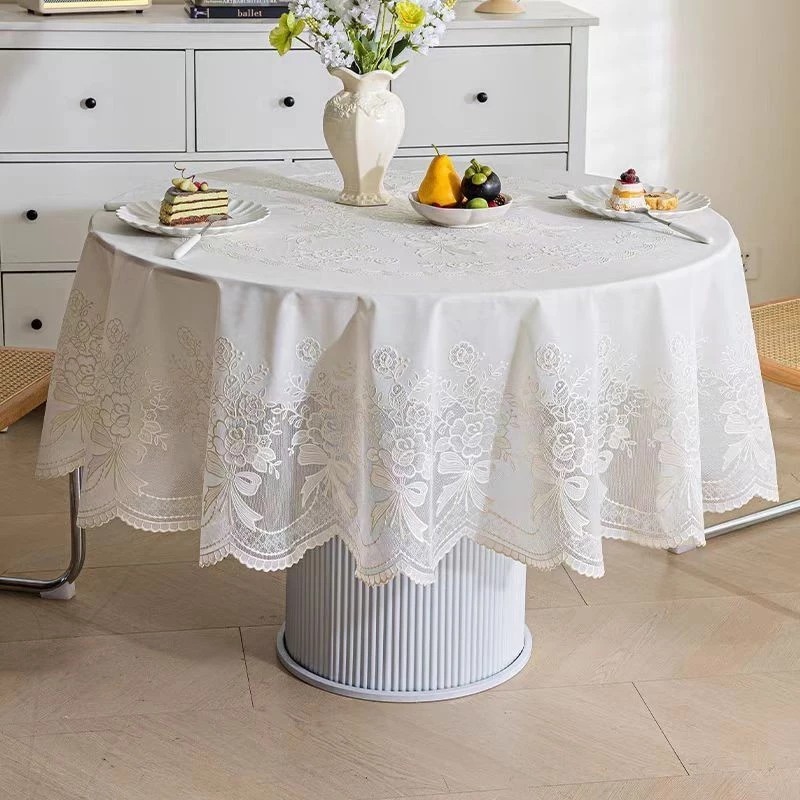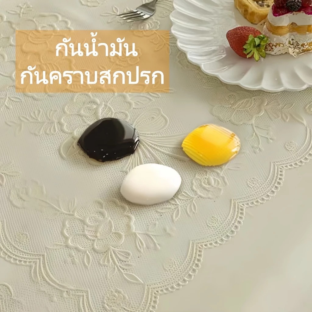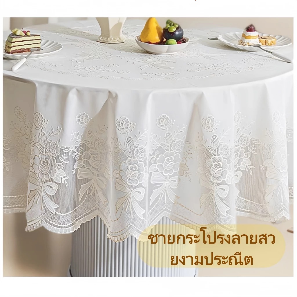 🎉พร้อมส่งในไทย🎉ผ้าปูโต๊ะลูกไม้ลายดอกไม้ฉลุ สไตล์วินเทจ กันน้ำ กันน้ำมัน PVC สำหรับโต๊ะกาแฟและห้องนั่งเล่น ตกแต่งบ้านหรู