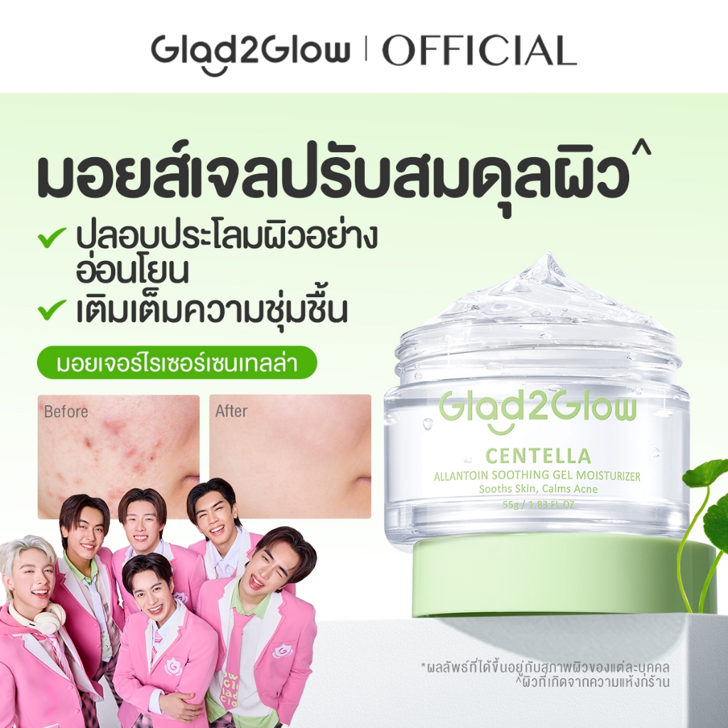Glad2Glow Gel Moisturizer +Salicylic Micellar Water+Mugwort Acid AcneClay Stick Mask ชุดสกินแคร์ทำความสะอาดและรักษาสิว