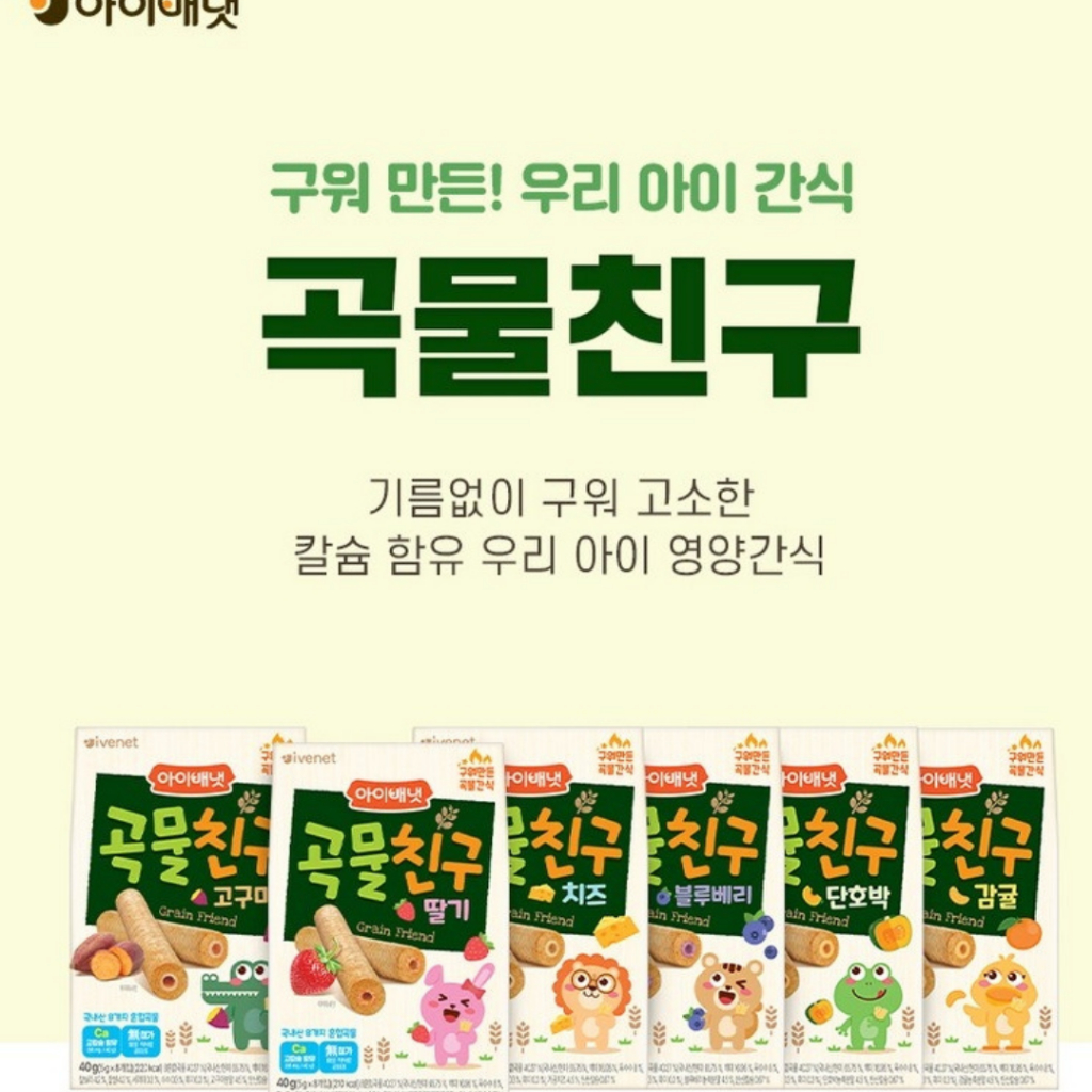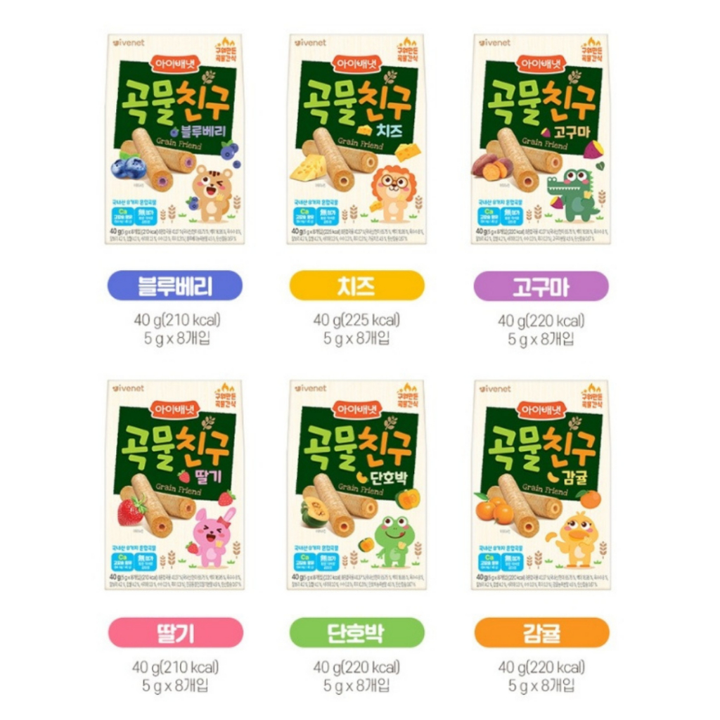 [Ivenet] Grain Friends Snack 40g – Strawberry / Sweet Potato / Blueberry / Cheese / Citrus / Sweet Pumpkin