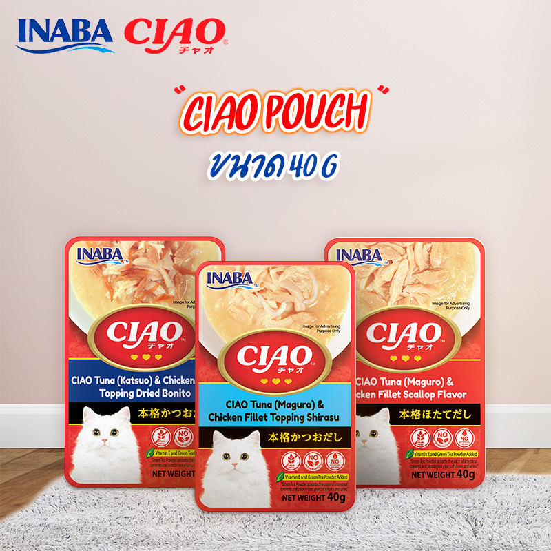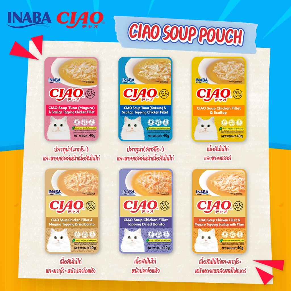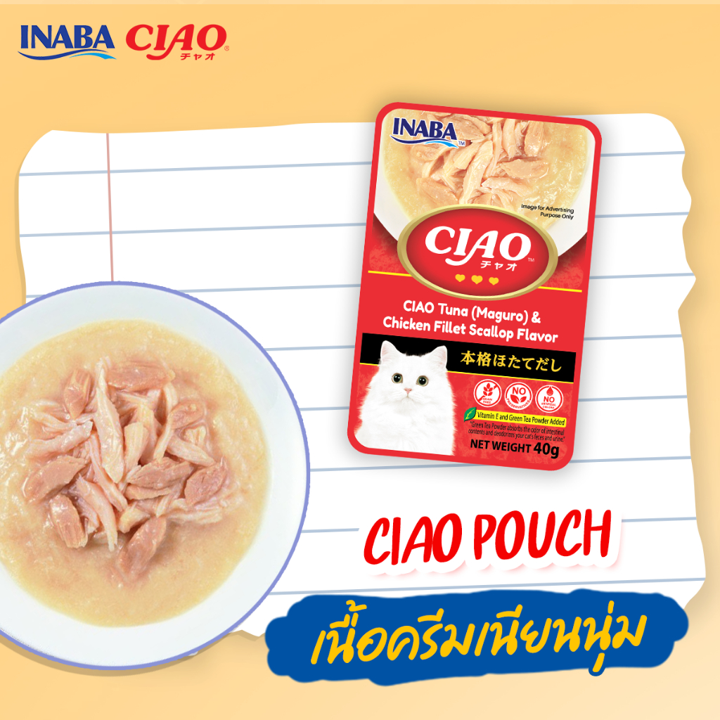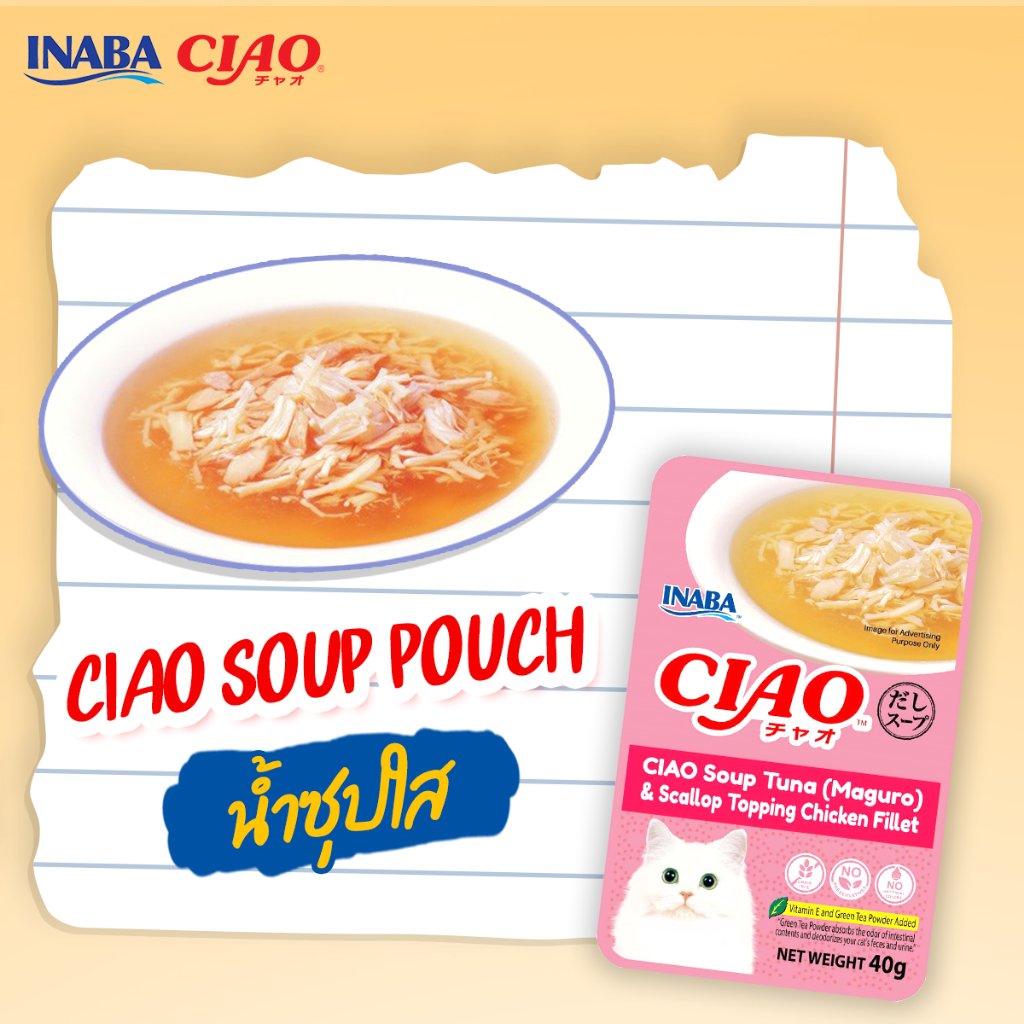 (x16ซอง) CIAO INABA เชาว์ อินาบะ ปลาทูน่า เนื้อสันในไก่ ในเนื้อครีมและซุปใส 40g(กล่อง)