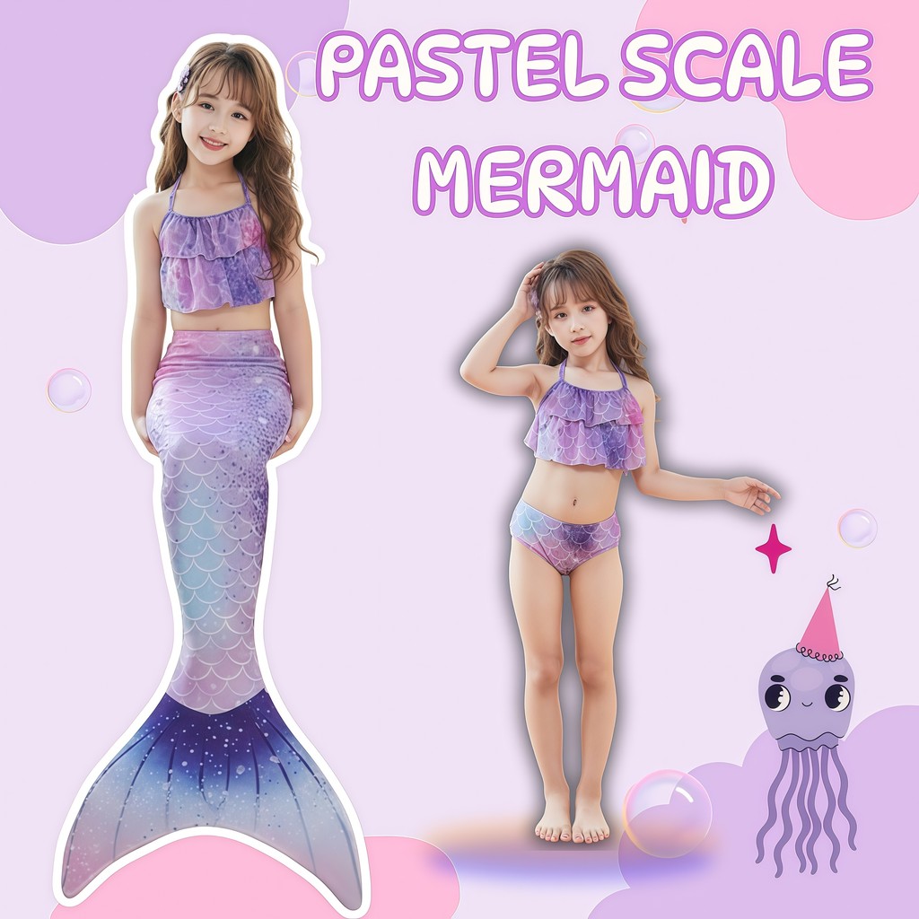 (ส่งด่วน1วัน) BABY BEACH ชุดนางเงือก ชุดว่ายน้ำเด็กผู้หญิง ชุดว่ายน้ำเด็ก 3 ชิ้น 🦋 มีไซส์ S-XL ดีไซน์น่ารัก Y744