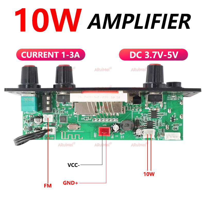 บอร์ดแอมป์บลูทูธขนาดเล็ก 10W 3.7-5V พร้อมจอแสดงผลและรีโมท DIY ชุดลําโพง