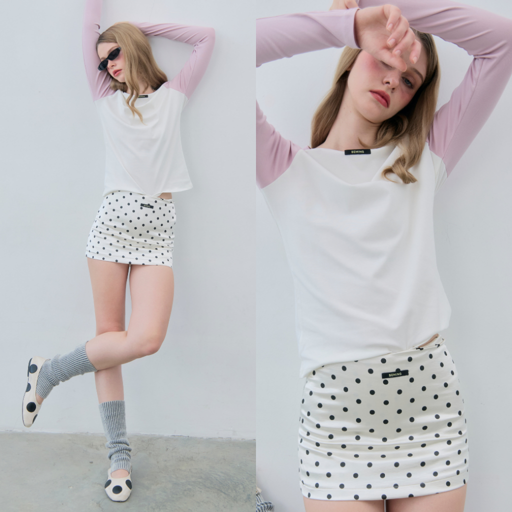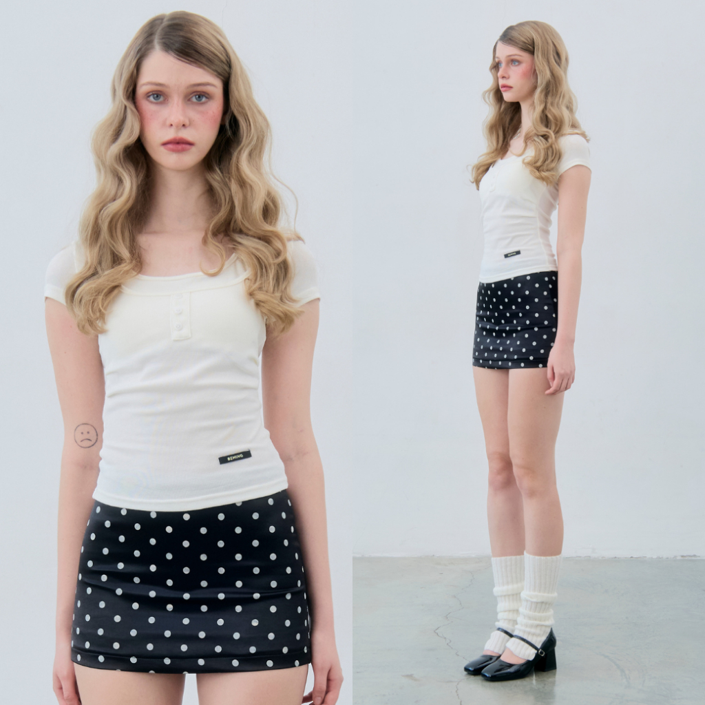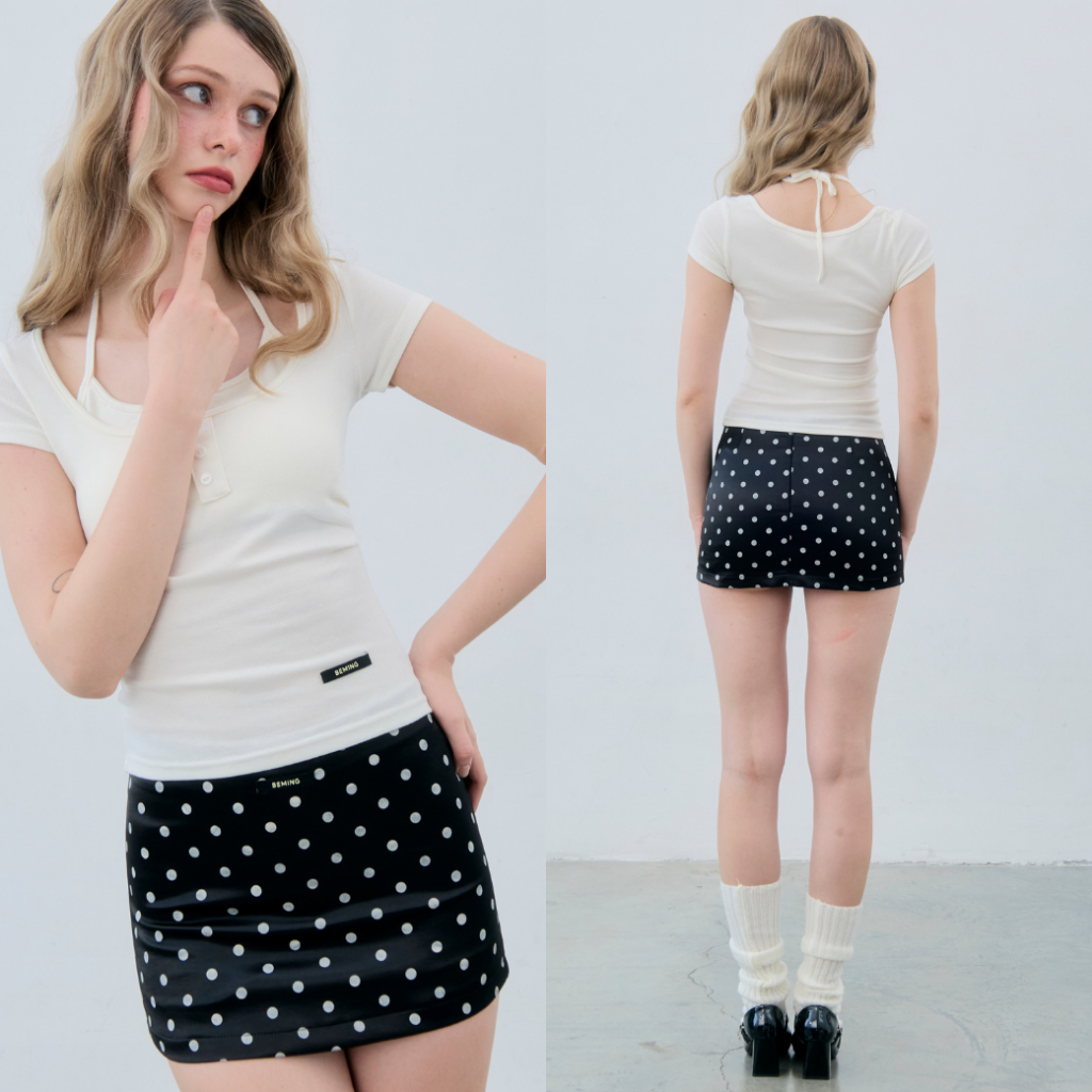 Bemingskirt077(XS-4XL)-Polka Mini Skirt - กระโปรงทรงสั้นลายจุดดีไซน์คลาสสิกเนื้อผ้านิ่มลื่น