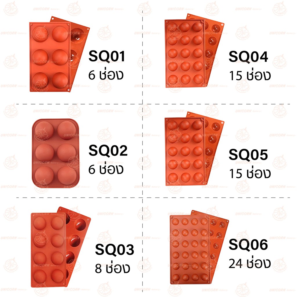 (มี 16 ขนาด) พิมพ์ซิลิโคน พิมพ์วุ้น พิมพ์ลูกส้ม พิมพ์ครึ่งวงกลม พิมพ์วงกลม ครึ่งวงกลม พิมพ์ช๊อคโกแลต unicornbakery
