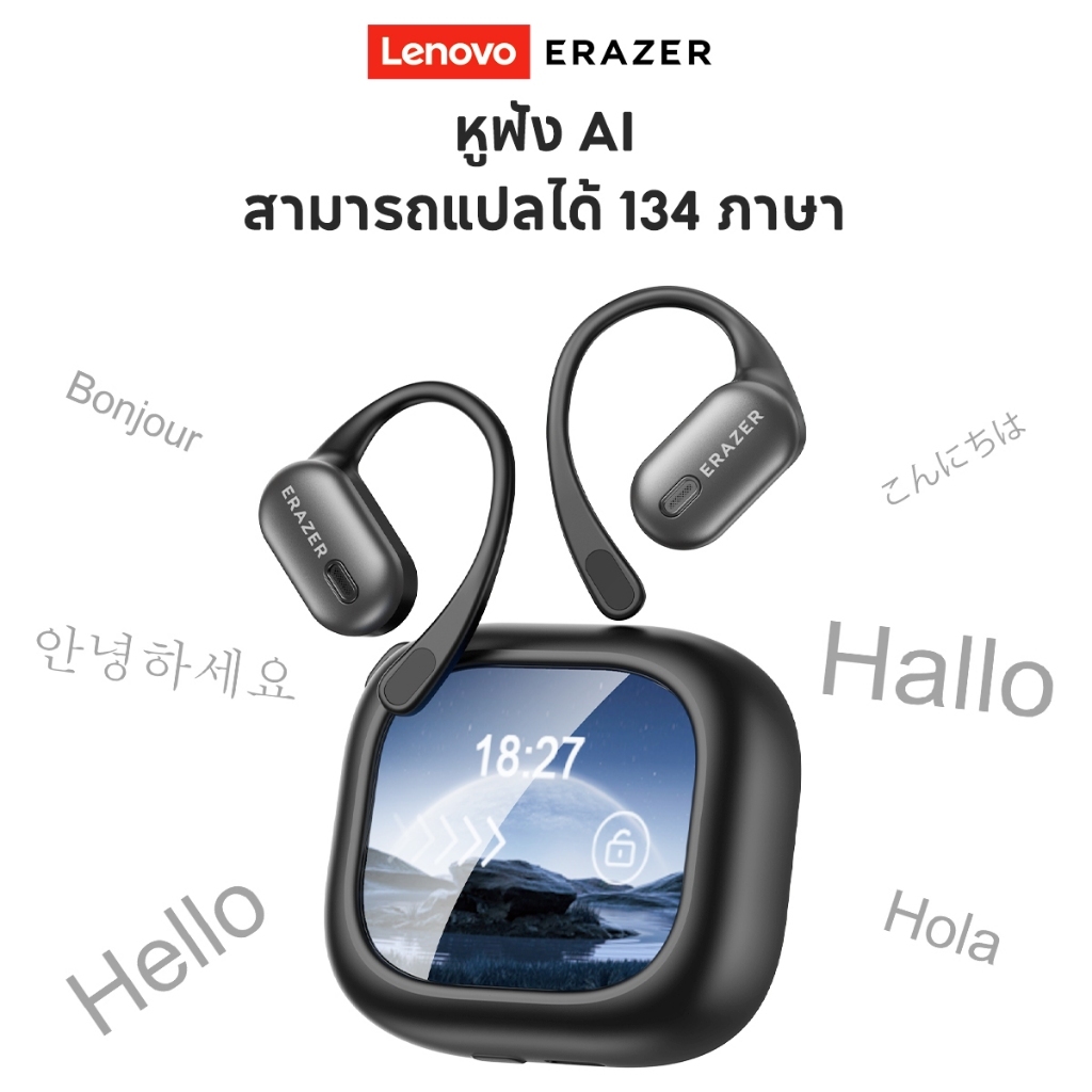 หูฟังบลูทูธไร้สาย Lenovo ERAZER XF38 สินค้าแท้หูฟังไร้สาย AI แปลแบบเรียลไทม์ หน้าจอสัมผัส LED ด้วยระบบเสียง Dolby ขั้นสูง TWS Bluetooth 5.4 กันน้ำ IPX7