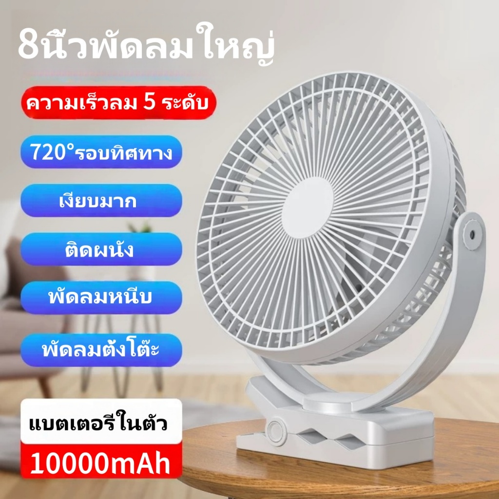 8นิ้ว พัดลมหนีบ แบตเตอรี่ในตัว ติดผนัง ห้องครัวห้องน้ำ ความเร็วลม 5 ระดับ พัดลมตั้งโต๊ะ พัดลมแขวนUSB