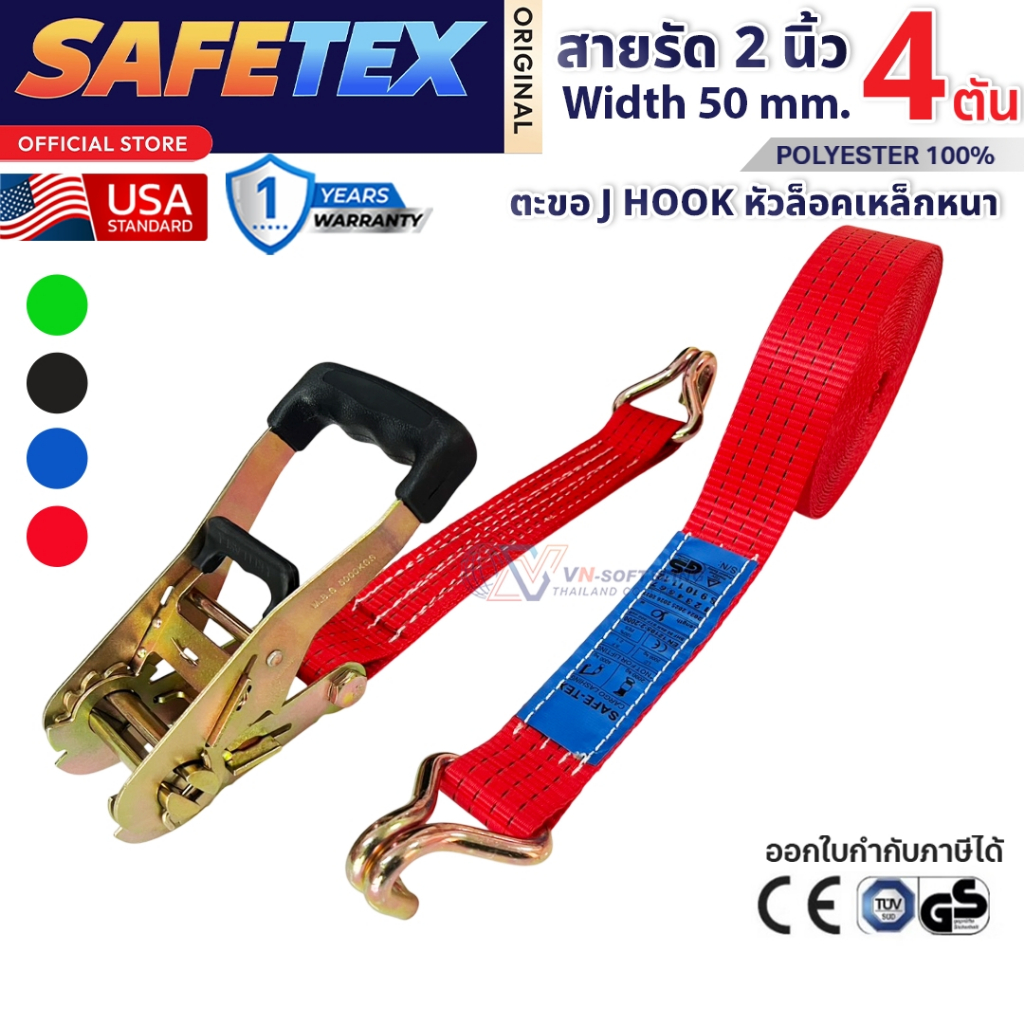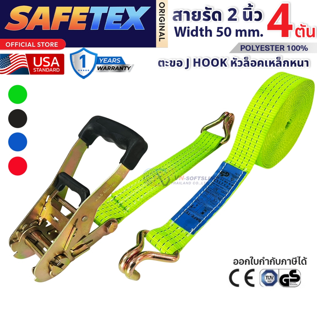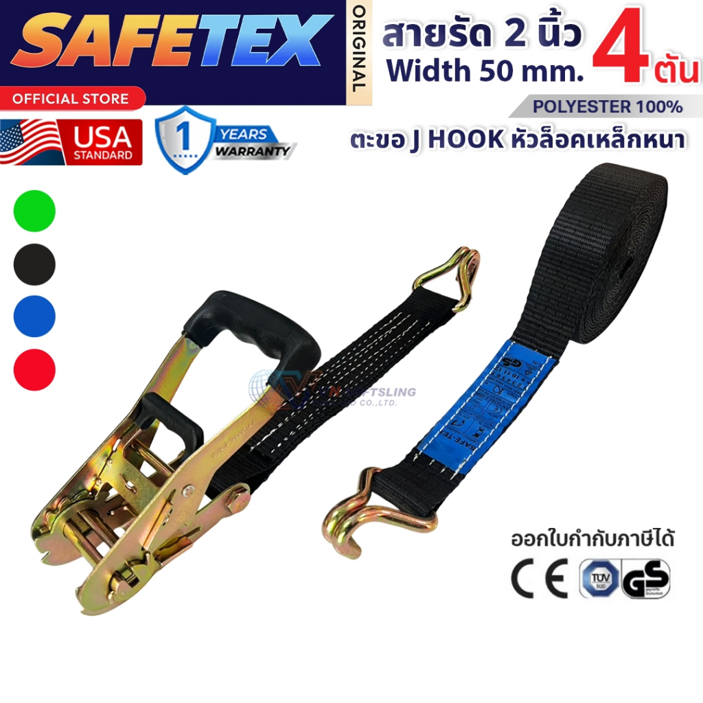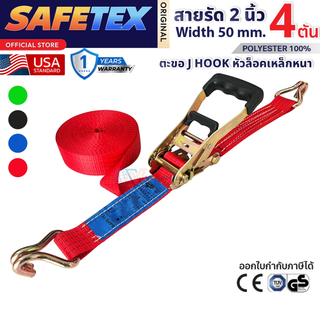 สายรัดก๊อกแก๊ก 2 นิ้ว 4 ตัน SAFETEX USA สายรัดของ สายรัดรถ สายรัดรถบรรทุก สายรัดโพลีเอสเตอร์100%