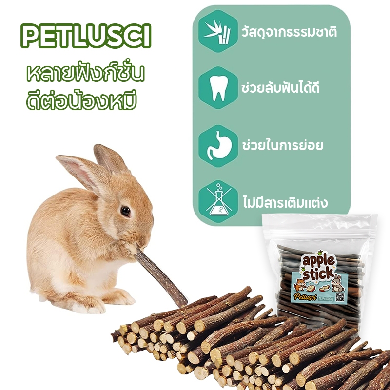 PETLUSCI ไผ่หวาน ไม้แอปเปิ้ล 500g/1kg Apple sticks ขนมลับฟันธรรมชาติ สำหรับกระต่าย หนูแฮมเตอร์