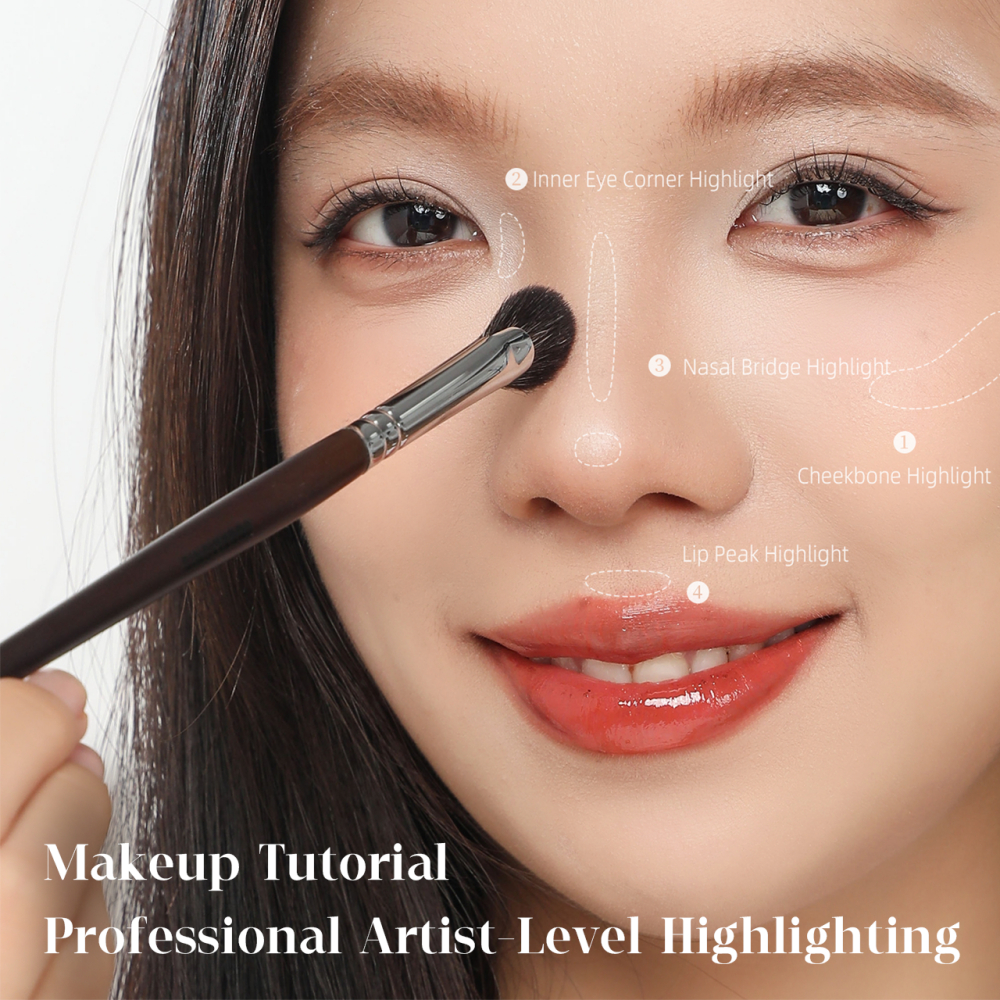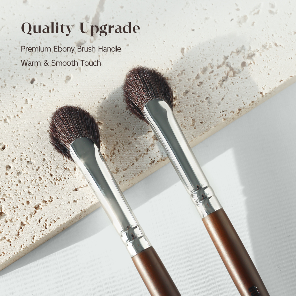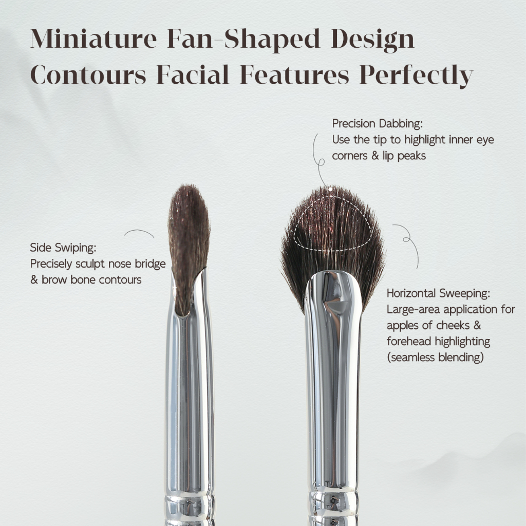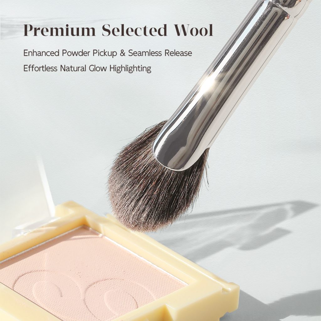 GUOXIAONIU แปรงไฮไลท์รูปทรงพัด ด้ามจับไม้สีดำ ขนแปรงนุ่มพิเศษ คุณภาพสูง จับแป้งได้ดีเยี่ยม เกลี่ยได้อย่างไร้ที่ติ