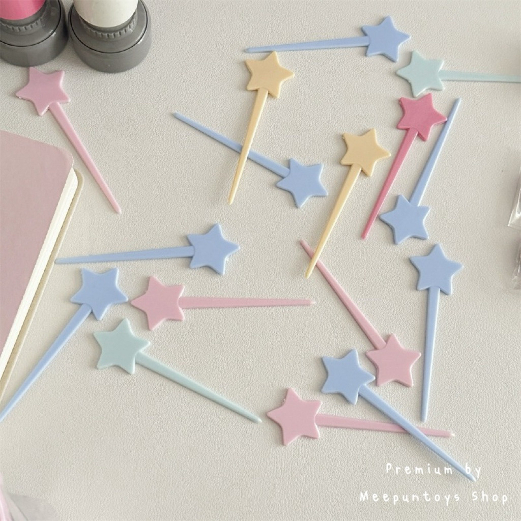 [ พร้อมส่ง ] ไม้จิ้มรูปดาว สำหรับตกแต่ง แพค 10 ชิ้น สีพาสเทลสุดคิ้วท์มากๆ 🎀🩵🍈🍡💫