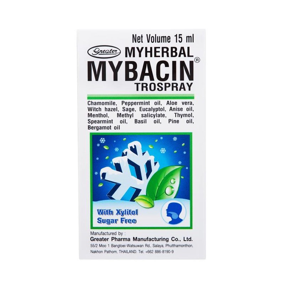 มายบาซิน สเปรย์พ่นคอ สูตรเบรท 15 มล. (แพ็ค 1 หลอด) MyBacin Trospray with Breath_Greater เกร๊ทเตอร์ฟาร์ม่า [Life]