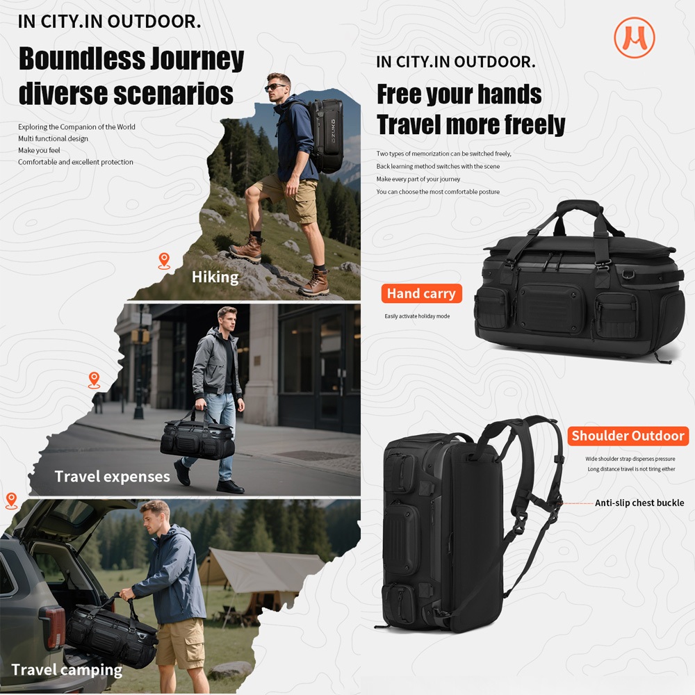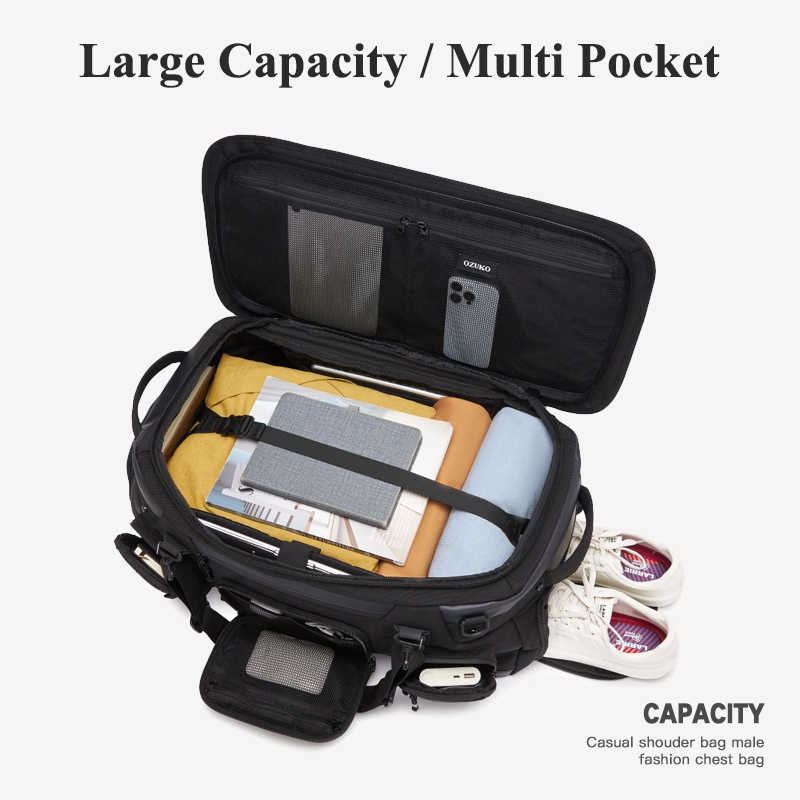 OZUKO Travel Duffle Bag ความจุขนาดใหญ่รองเท้ากันน้ํากลางแจ้งช่องยิมกระเป๋ากีฬา