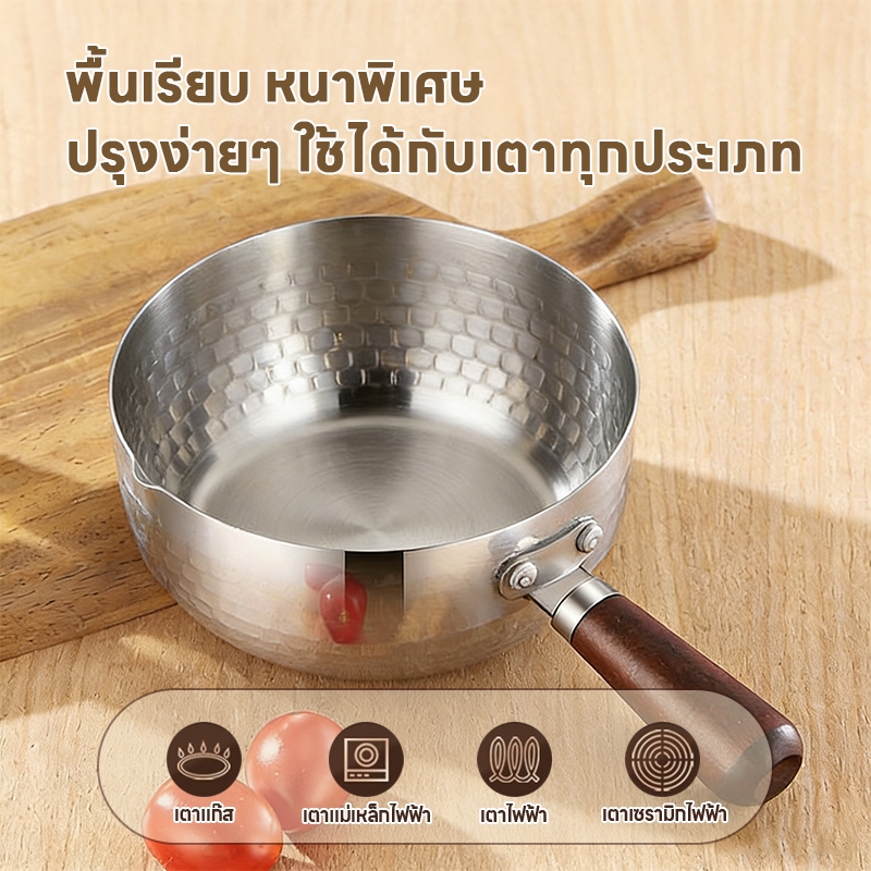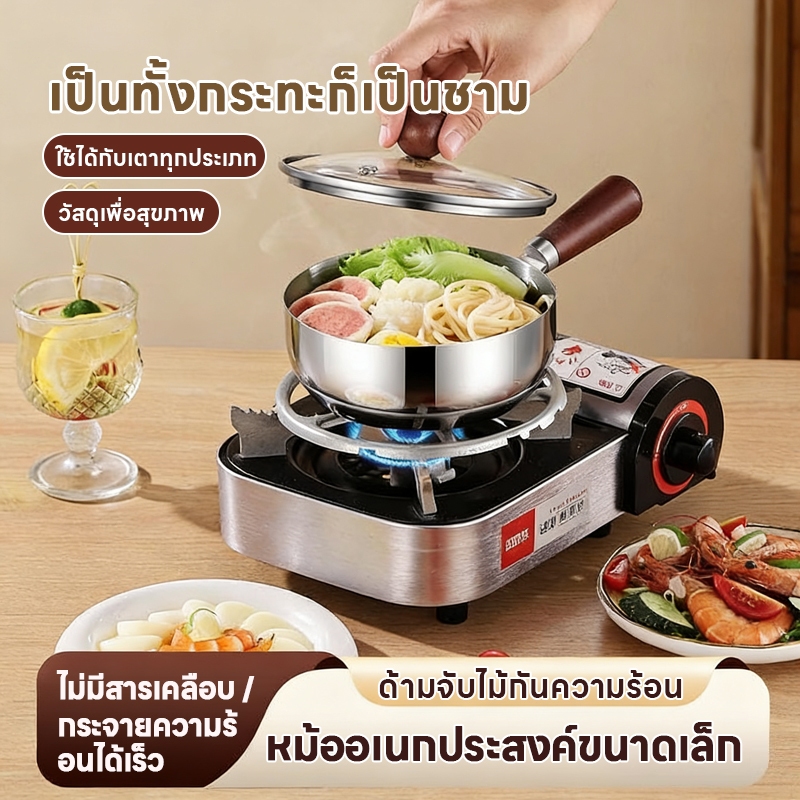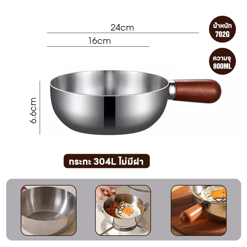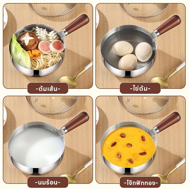 SUK HOUSE 17CM หม้อสแตนเลส ด้ามจับไม้หนาพิเศษ ใช้ต้ม ซุป ทอด ใช้ต้มบะหมี่/ทำซุป/ทอด สำหรับผู้ใหญ่