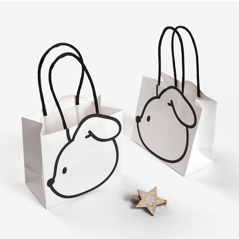 COZII พร้อมส่งในไทย ขายดี ถุงกระดาษหูหิ้ว 3D กระต่าย สีขาวดำ มินิมอล สำหรับใส่ของ น่ารัก PAPER BAG มี2ขนาด