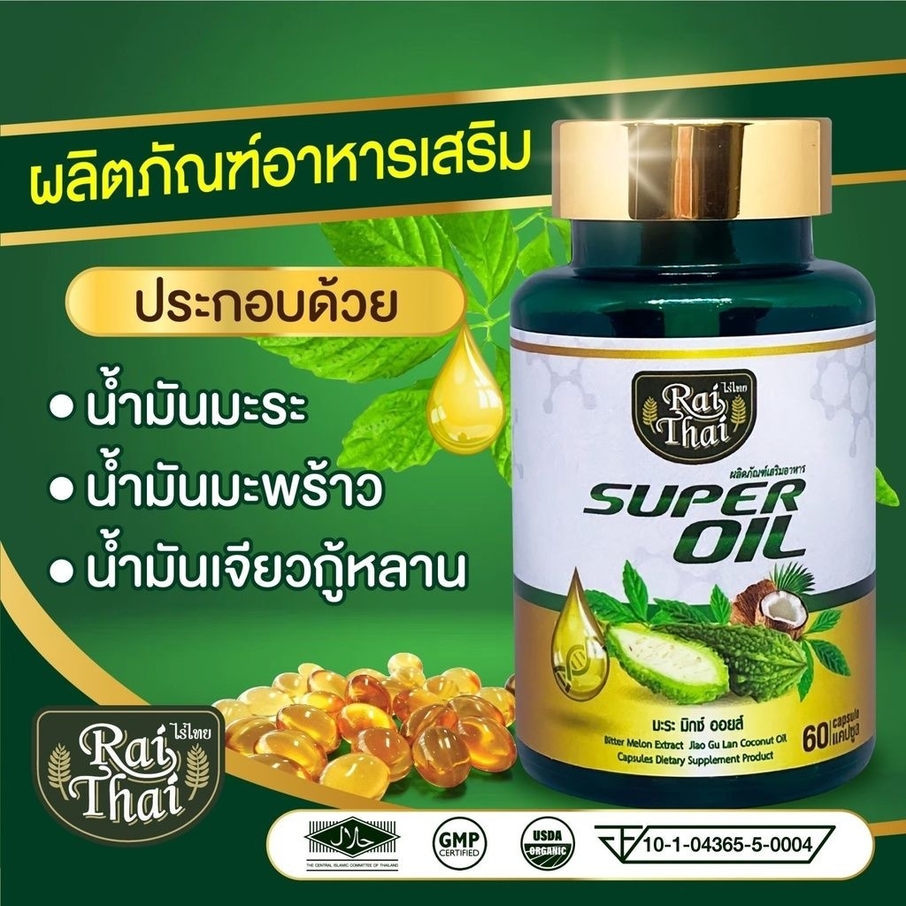 Raithai น้ำมันมะระมิกซ์ออยล์ สกัดเย็น ตราไร่ไทย สำหรับคนรักสุขภาพ กระปุก 60 แคปซูล>[EXP21/06/69]