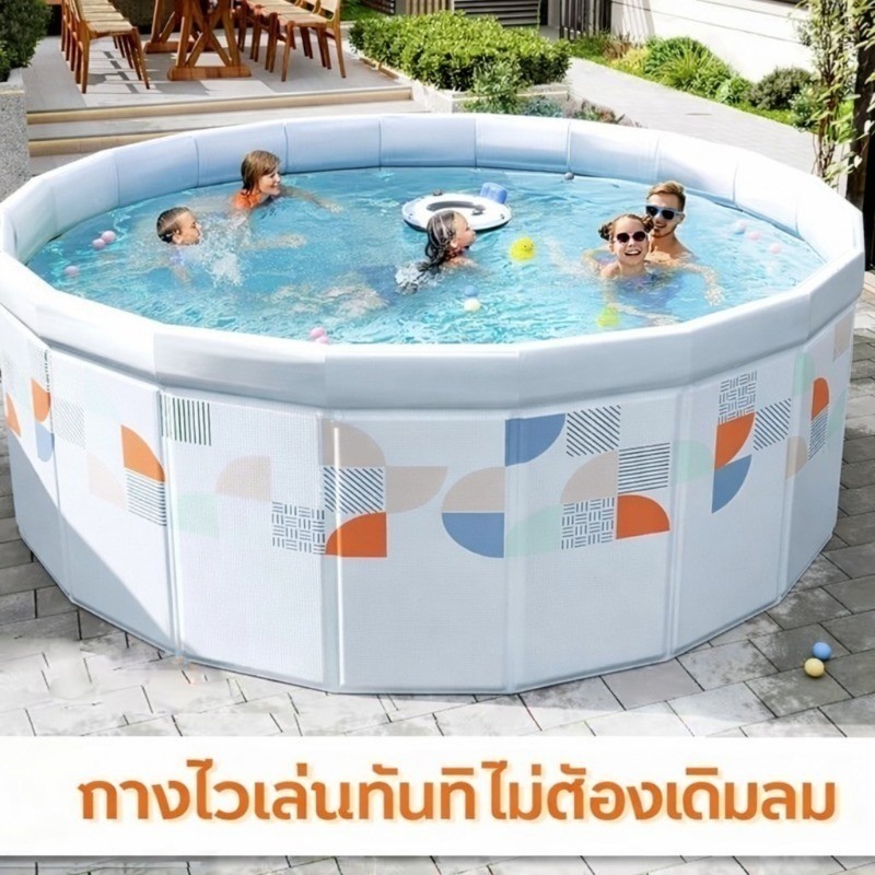 160CM สระน้ำเด็ก สระว่ายน้ำพับได้ ไม่ต้องเป่าลม PVC หนา แข็งแรง ใช้ในบ้านและกลางแจ้ง