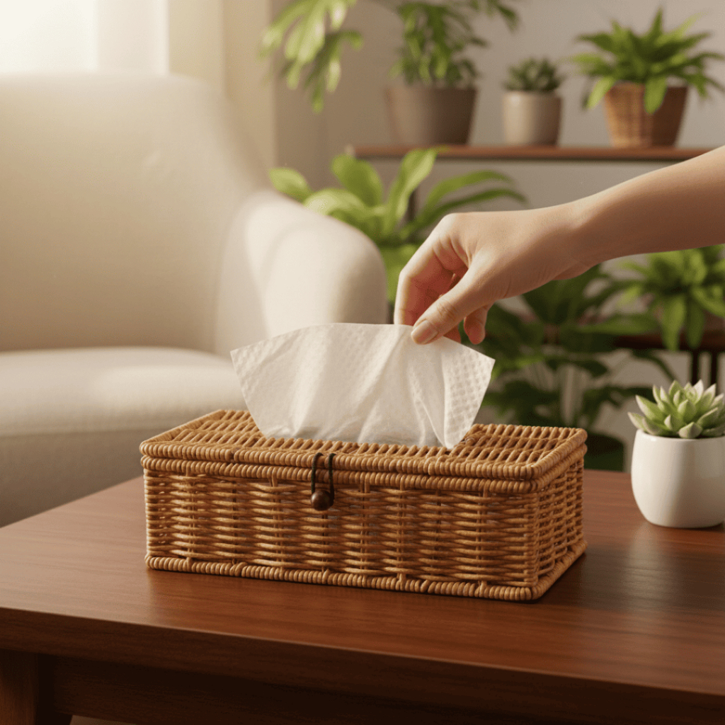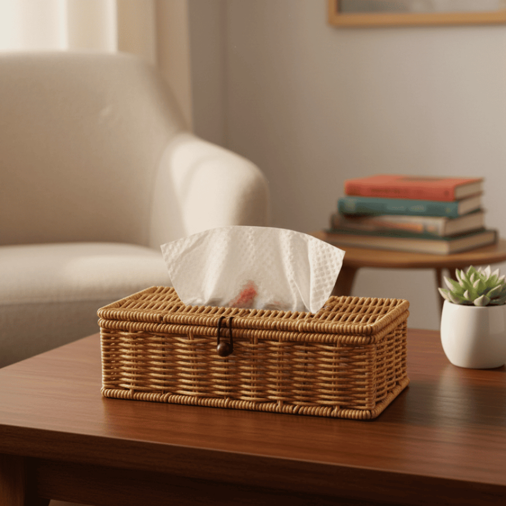 Forward กล่องใส่ทิชชู กล่องใส่กระดาษทิชชู ทรงสี่เหลี่ยมผืนผ้า วัสดุหวายเทียมสาน ขนาด13.5x24.5x7.5ซม รหัสสินค้า RA-FD634