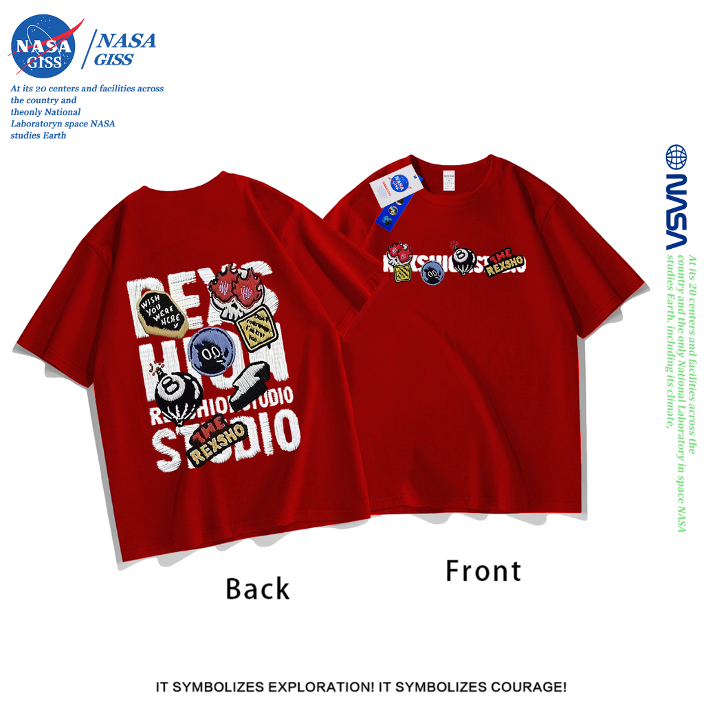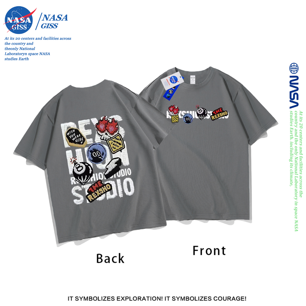 NASA เสื้อยืดชายหญิงแขนสั้น สตรีทฮิปฮอป summer แบดจ์โดปามีน พิมพ์ลาย คอตตอน คอกลม หลวมและระบายอากาศ