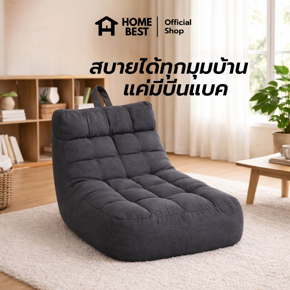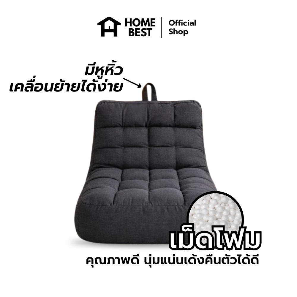 HomeBest บีนแบค Bean Bag บีนแบคลายตาราง ดีไซน์มินิมอล ผ้าแคนวาสหนานุ่ม เม็ดโฟมพรีเมียม รองรับสรีระ เติมโฟมได้