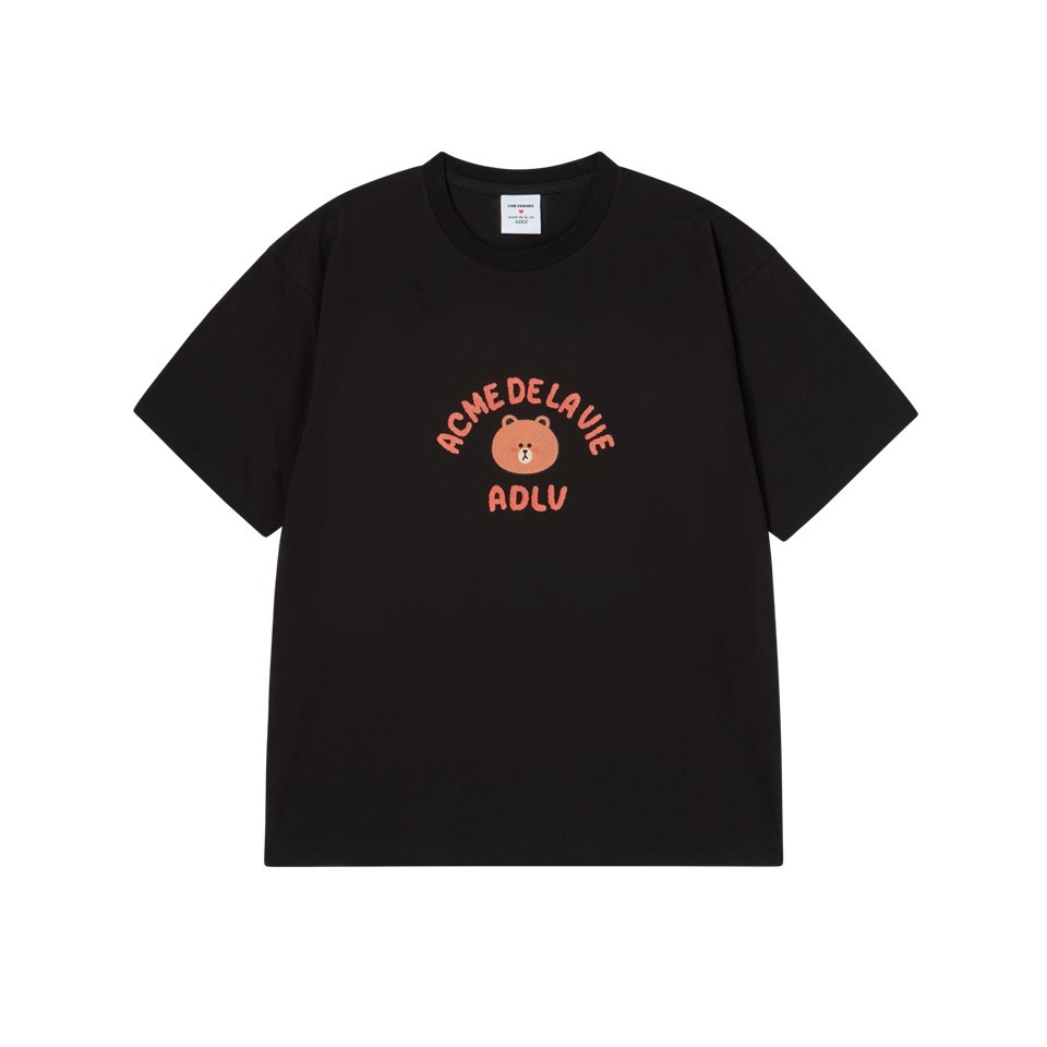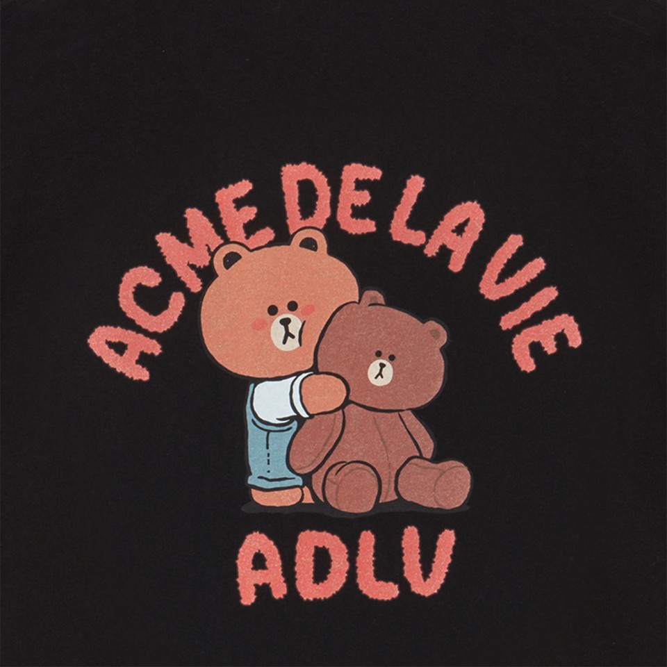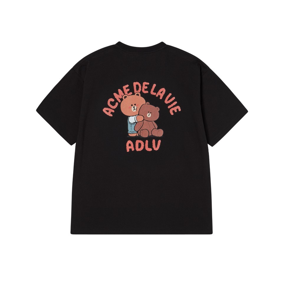 ADLV [acme de la vie] เสื้อยืด Oversize Bear Doll Hug Brown Line Friends Short Sleeve T-Shirt Black (50261SBBSSU_S6BKXX)