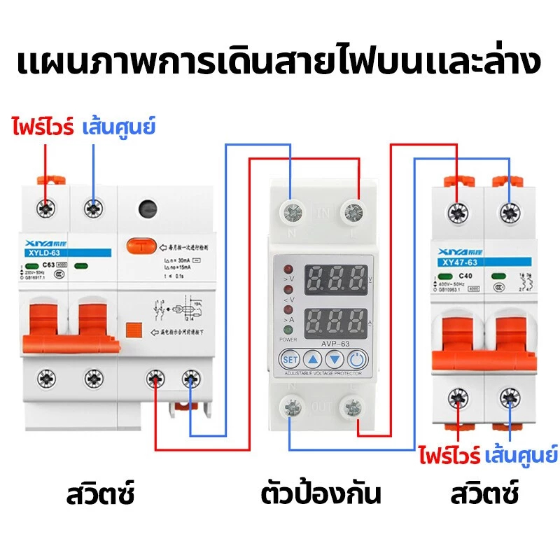 ชิโนทามเมอร์ 40A/63A 220V 50Hz อุปกรณ์ป้องกันแรงดันไฟฟ้าเกิน กันไฟกระชาก การอ่านที่แม่นยำ รีเซ็ตอัตโนมัติ การป้องกันแรงด