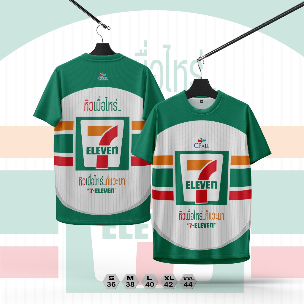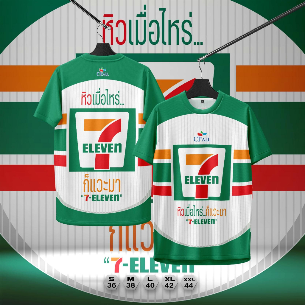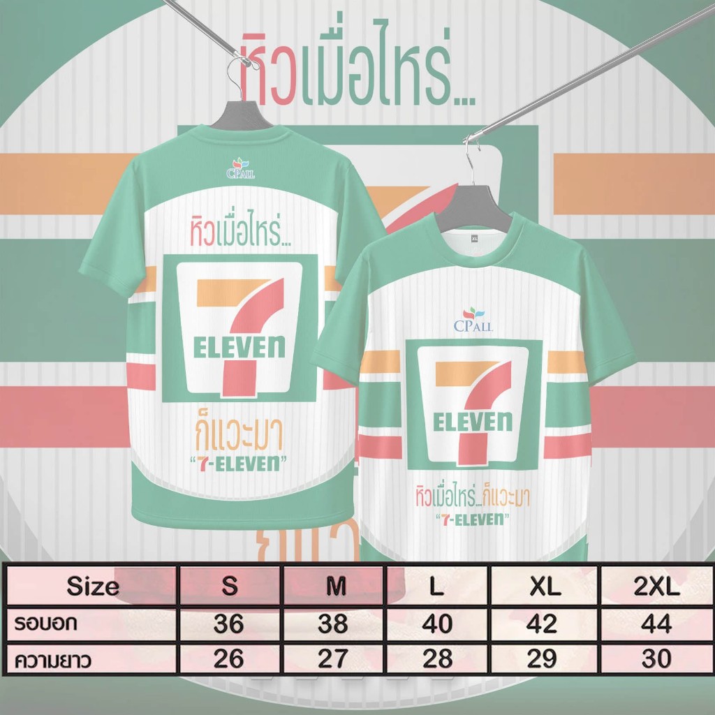 เสื้อคอกลมลาย7-11เนื้อกีฬานุ่มใส่สะบาย
