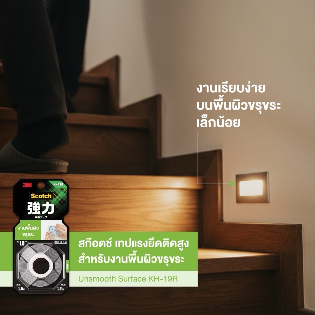 3M Scotch สก๊อตช์ เทปแรงยึดติดสูง รุ่น KH-19 สำหรับงานพื้นผิวขรุขระ ขนาด 19 มม ยาว 1.50 เมตร