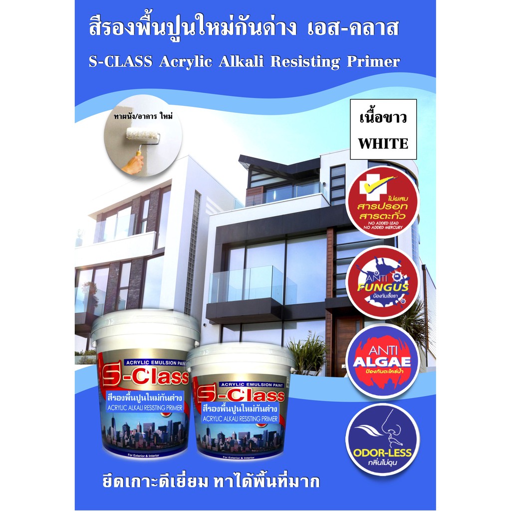 เอสคลาส สีรองพื้นปูนใหม่กันด่าง เกรดดี สำหรับทาภายนอกและภายใน ขนาดถัง 17.5 ลิตร ฟรีลูกกลิ้งทาสี