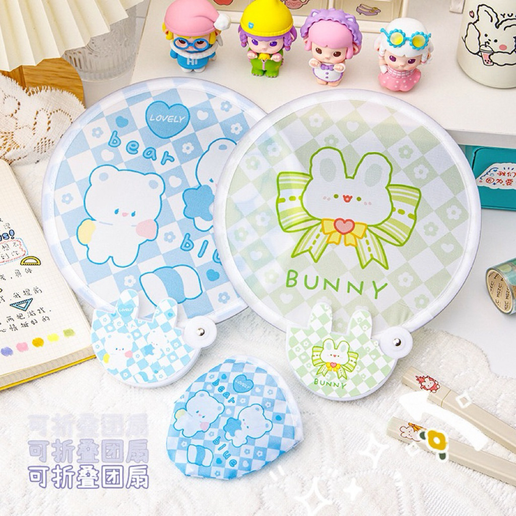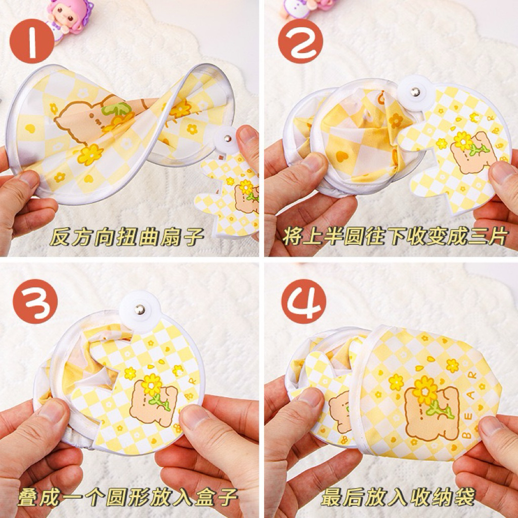 พัดพกพา พัดสปริงพับเก็บได้ พร้อมกระเป๋า ลายการ์ตูนน่ารัก พับเก็บได้ แก้ร้อน (ส่งจากไทย)