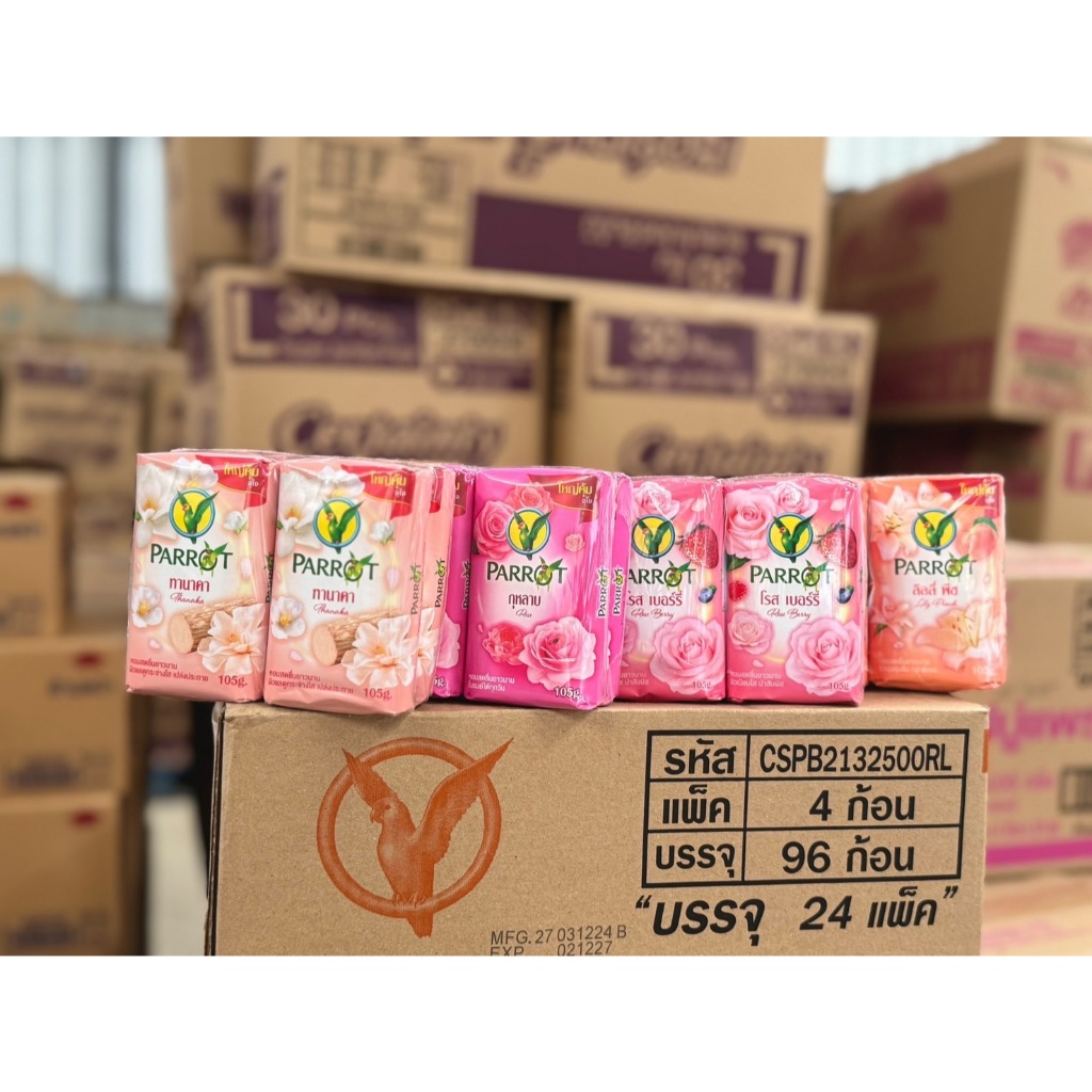 (แพ็ค 12 ก้อน) 🔥🔥Parrot นกแก้ว 105 กรัม สบู่ก้อนขนาดจัมโบ้ มี 8 สูตร