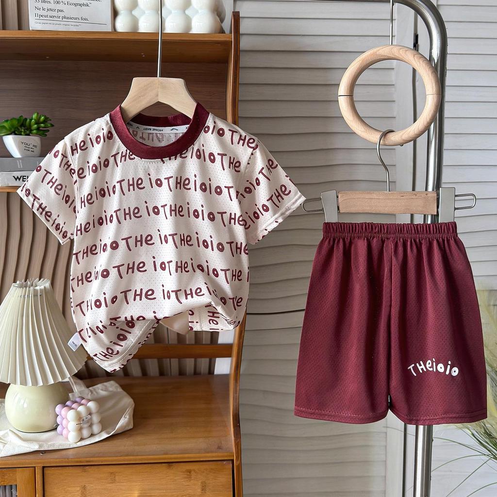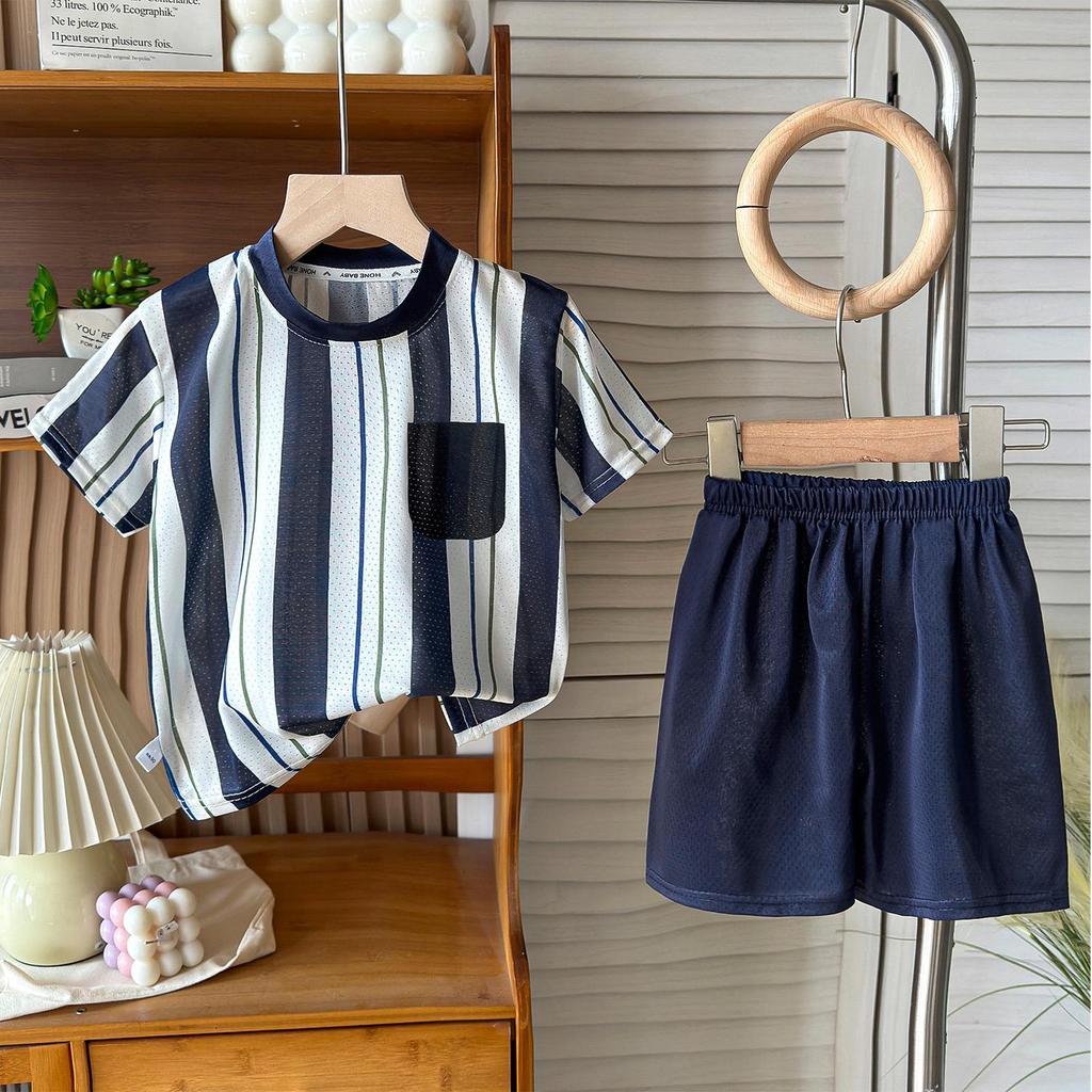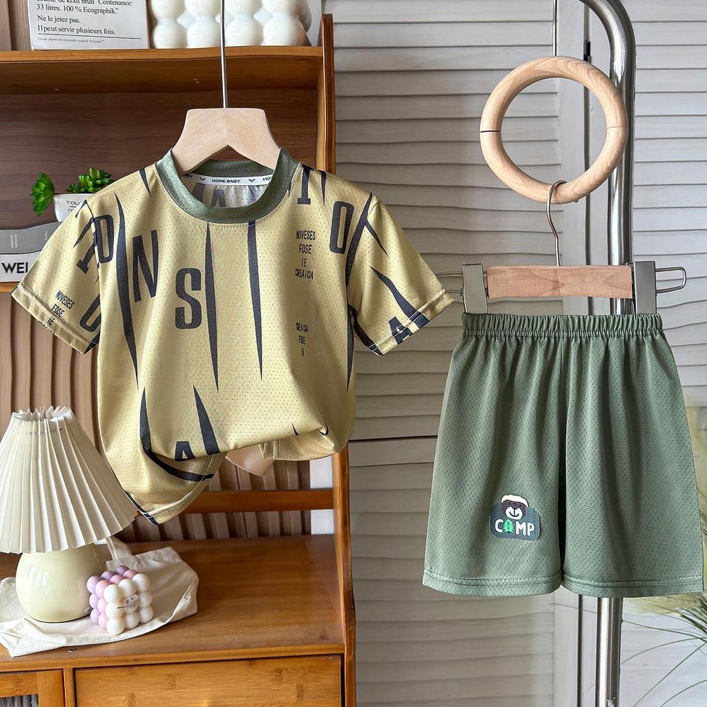 MooDeng Baby ชุดเซตเด็กชาย เสื้อ+กางเกง คอกลม เสื้อกีฬา ผ้าแจ็คการ์ด ยืดหยุ่น ผ้าลื่น มัน เบาใส่สบาย