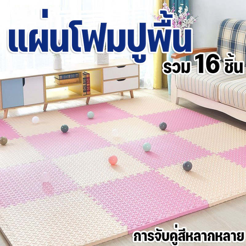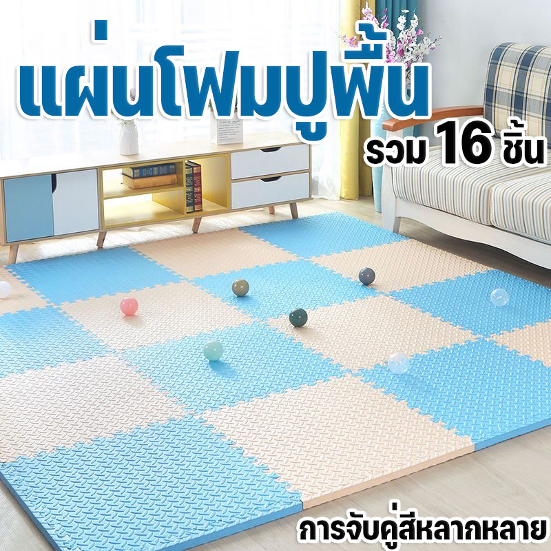 รวม 16 ชิ้น🔥แผ่นโฟมปูพื้น เสื่อรองคลาน เสื่อ แผ่นโฟม EVA จิ๊กซอว์ แผ่นรองคลาน มีขอบปิด กันน้ำ กันลื่น
