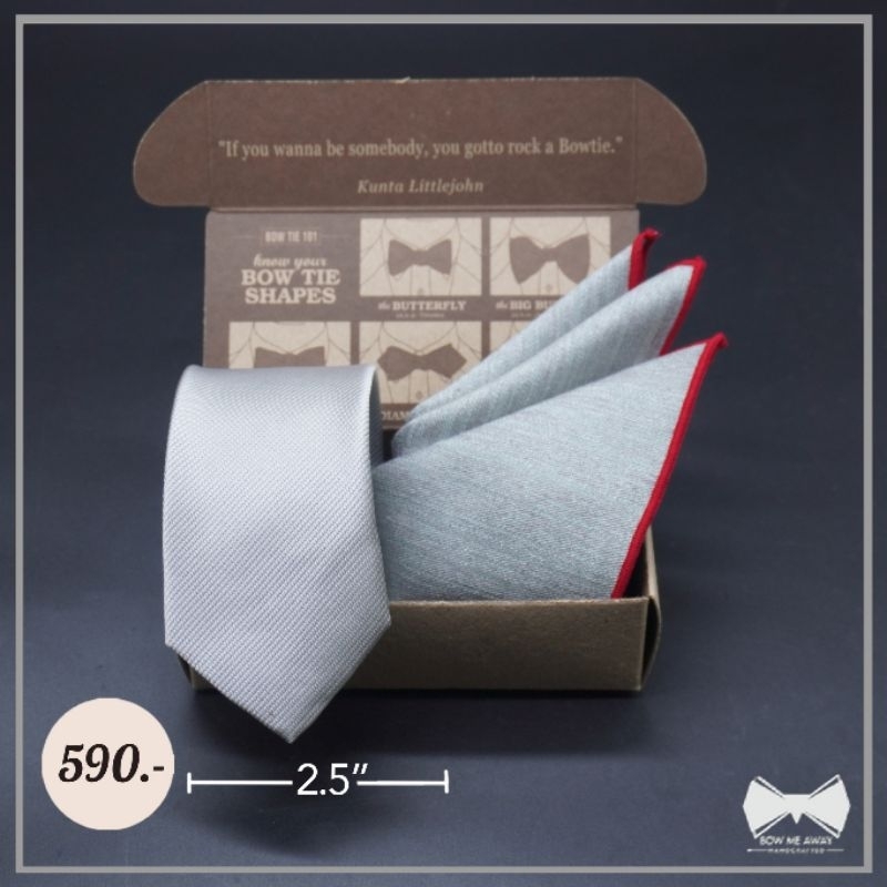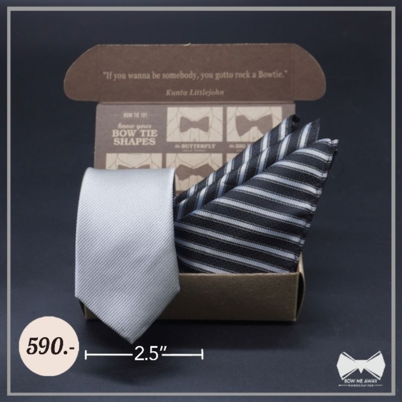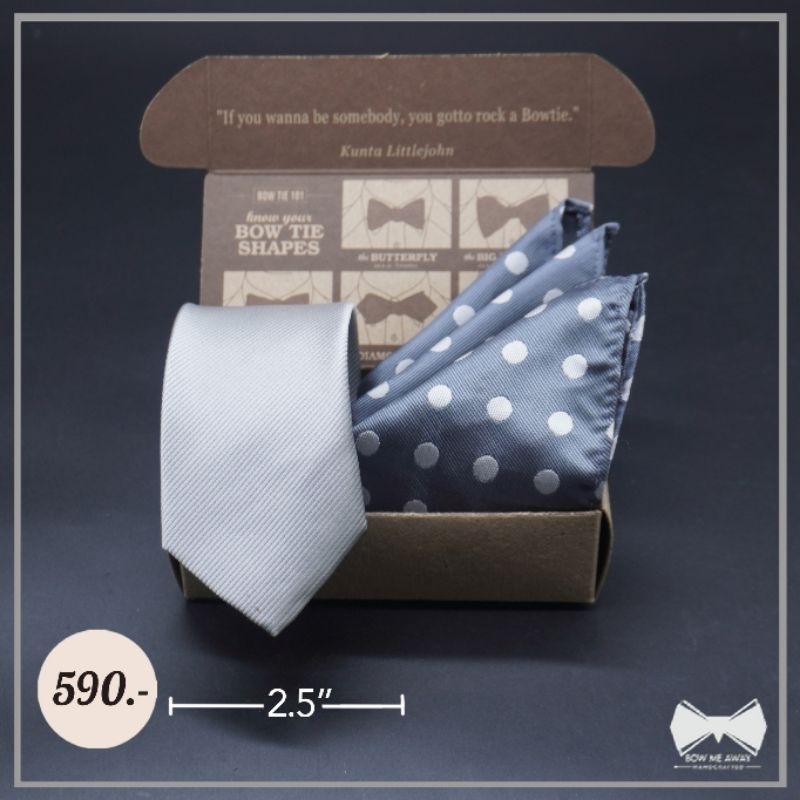 เซ็ทเนคไทเทาอ่อน + ผ้าเช็ดหน้าสูท