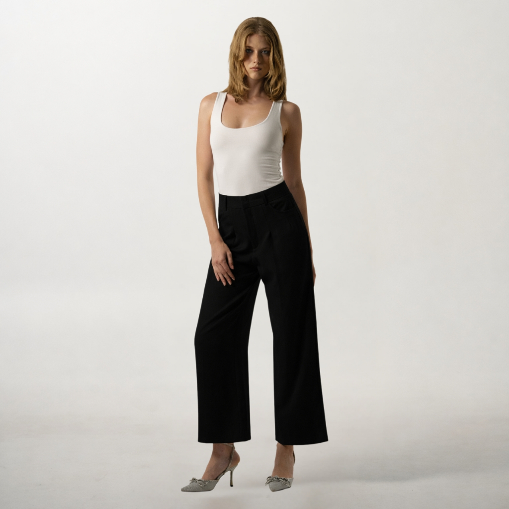 กางเกงขายาวกระบอกใหญ่ ผ้าสโนว์ ทรงสวย พรางหุ่น พรางต้นขา ModeFlex Pants | Amalyn Collections