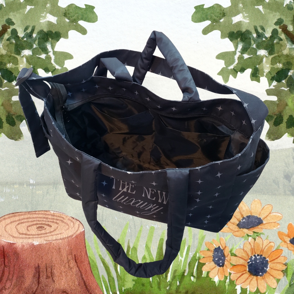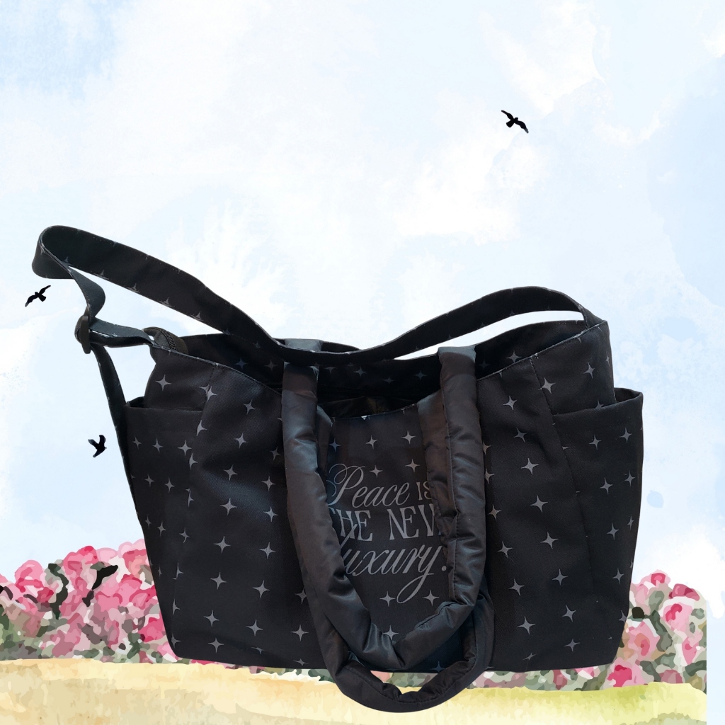 [พร้อมส่ง] Hello Daisy- Black collection กระเป๋าสะพายไหล่สีดำ - เทาดาวม่วง