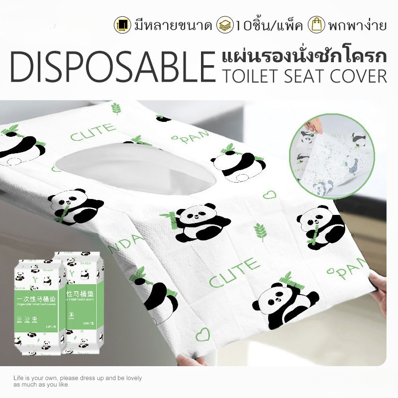10PCS แผ่นรองนั่งชักโครก Disposable Toilet Seat แบบพกพา กระดาษรองนั่ง วางบนฝารองนั่งชักโครกในห้องน้ำ