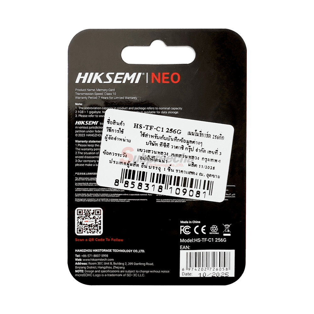 HS-TF-C1 256G / Micro SD Card 256GB HIKSEMI BY HIKVISION ของแท้ ประกันศูนย์ไทย