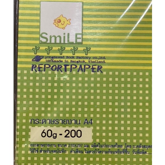 กระดาษรายงานชุด A4 60 แกรม 200 แผ่น กระดาษทำรายงาน ขนาด 21 x 29.7 cm. (A4)