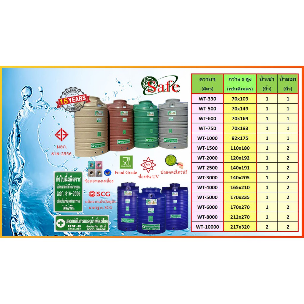 ถังเก็บน้ำบนดิน SAFE ลายแกรนิต 330-10000 ลิตร (สีทราย เทา เขียว แดง) ส่งฟรีกรุงเทพปริมณฑล